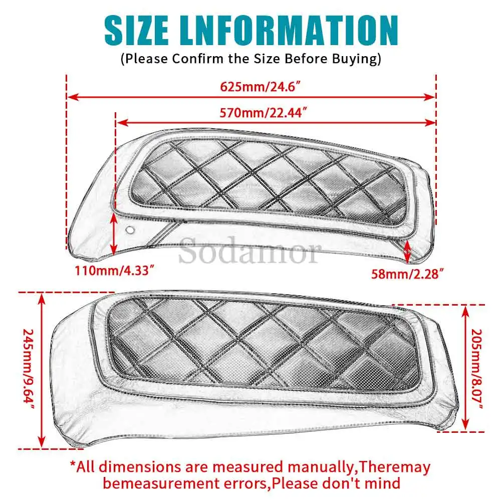 -Essas tampas de alforje são projetadas para ter um ajuste justo e devem ser ligeiramente esticadas quando instaladas pela primeira vez.Isso pode dificultar a instalação e o tamanho inferior das capas.Para facilitar a instalação, as tampas podem ser pré-aquecidas expondo-as à luz solar direta.As capas amolecerão e esticarão com menos força.As capas podem precisar ser ajustadas alguns dias após a instalação para um ajuste perfeito.Estique o orifício na tampa sobre a alça da trava.A remoção da alça não é necessária.