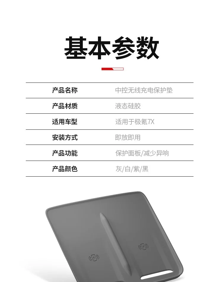 - > Para zeekr 7x controle central de carregamento sem fio almofada de silicone antiderrapante protetor de tapete acessórios especiais decoração interior