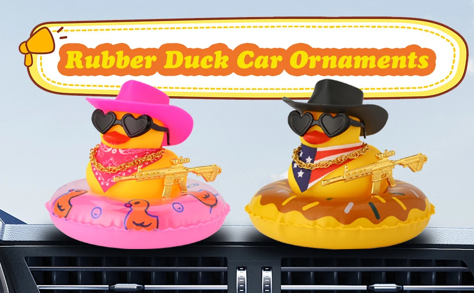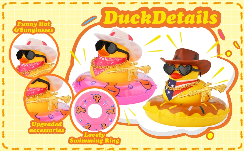【NOVO PAPEL DE COWBOY】- Todo o conjunto de patos de borracha está equipado com adereços especiais à esquerda, que são fofos e acrescentam um pouco de mistério.O pato de painel estilo desenho animado legal adicionará uma taxa de giro mais alta para você, o que é extremamente atraente.Se você encontrar algum problema ao usá-lo, não hesite em nos contatar, estaremos ao seu serviço 24 horas por dia.