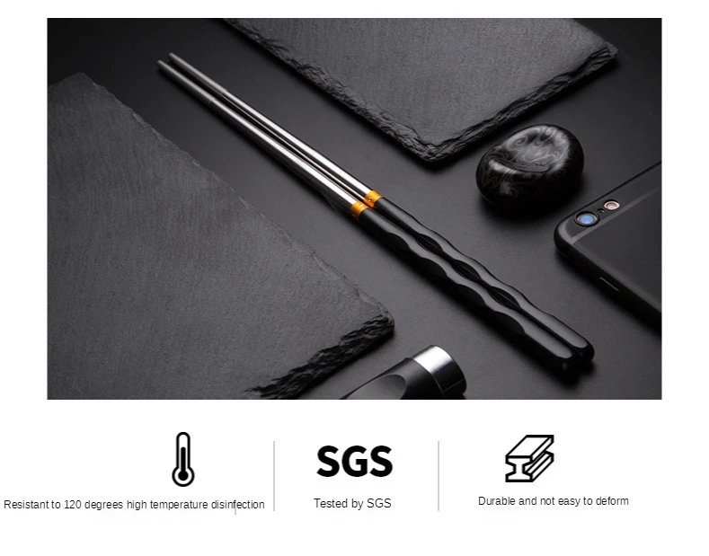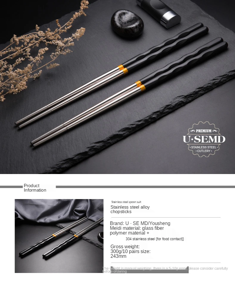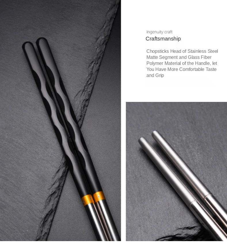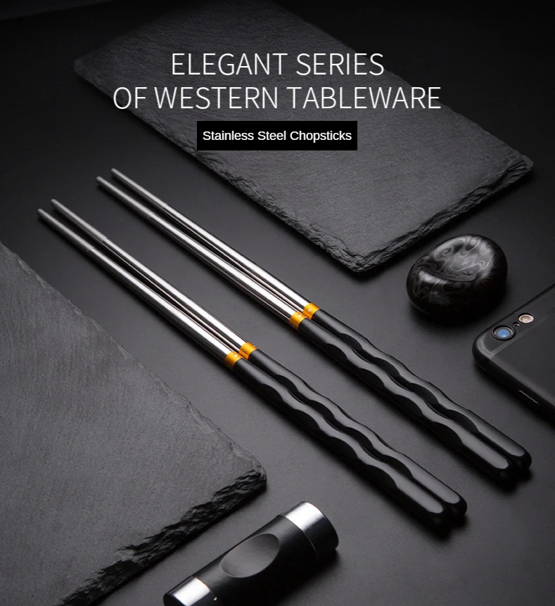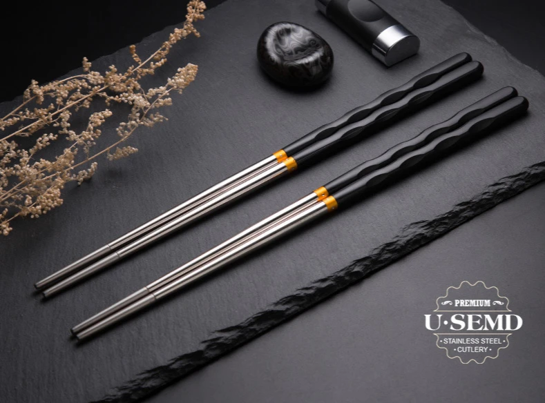 Pauzinhos de aço inoxidável antiderrapantes reutilizáveis, talheres de jantar, sushi japonês, pauzinhos de comida, pacote, 5pcs