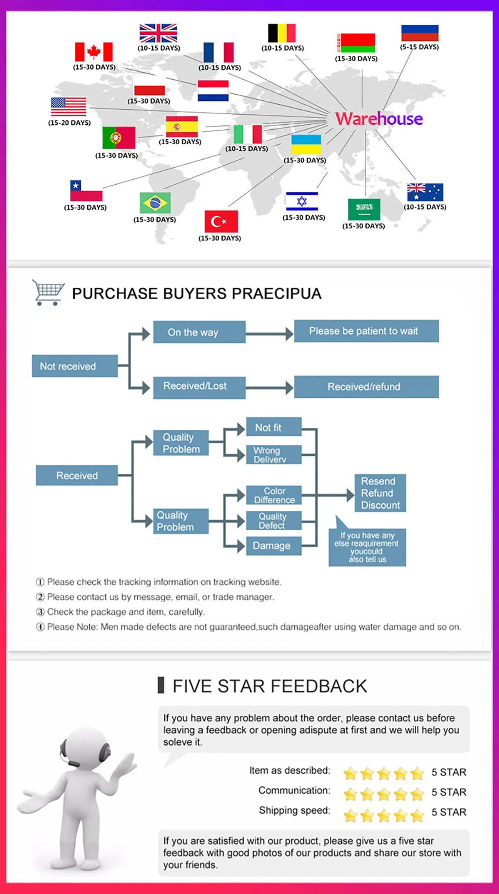 Depois de receber os itens, se você tiver qualquer problema entre em contato conosco e vamos resolver o problema para o seu.