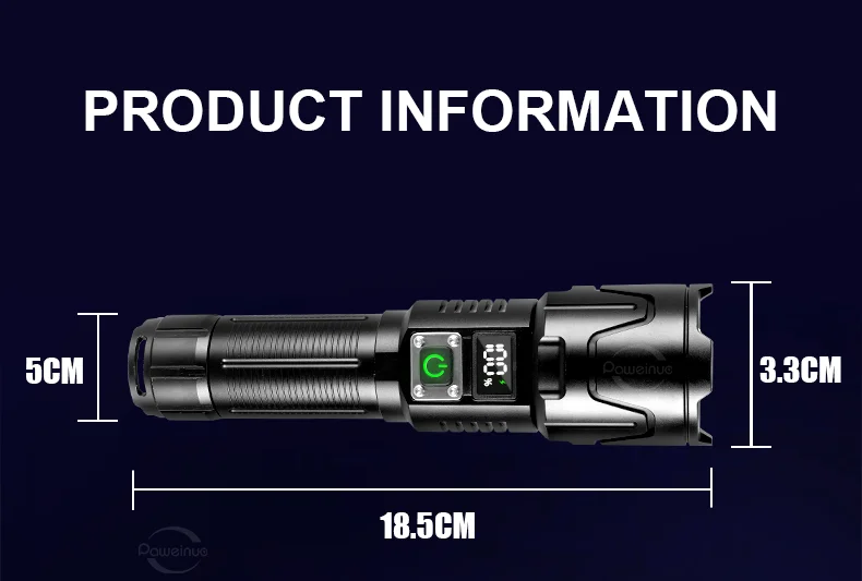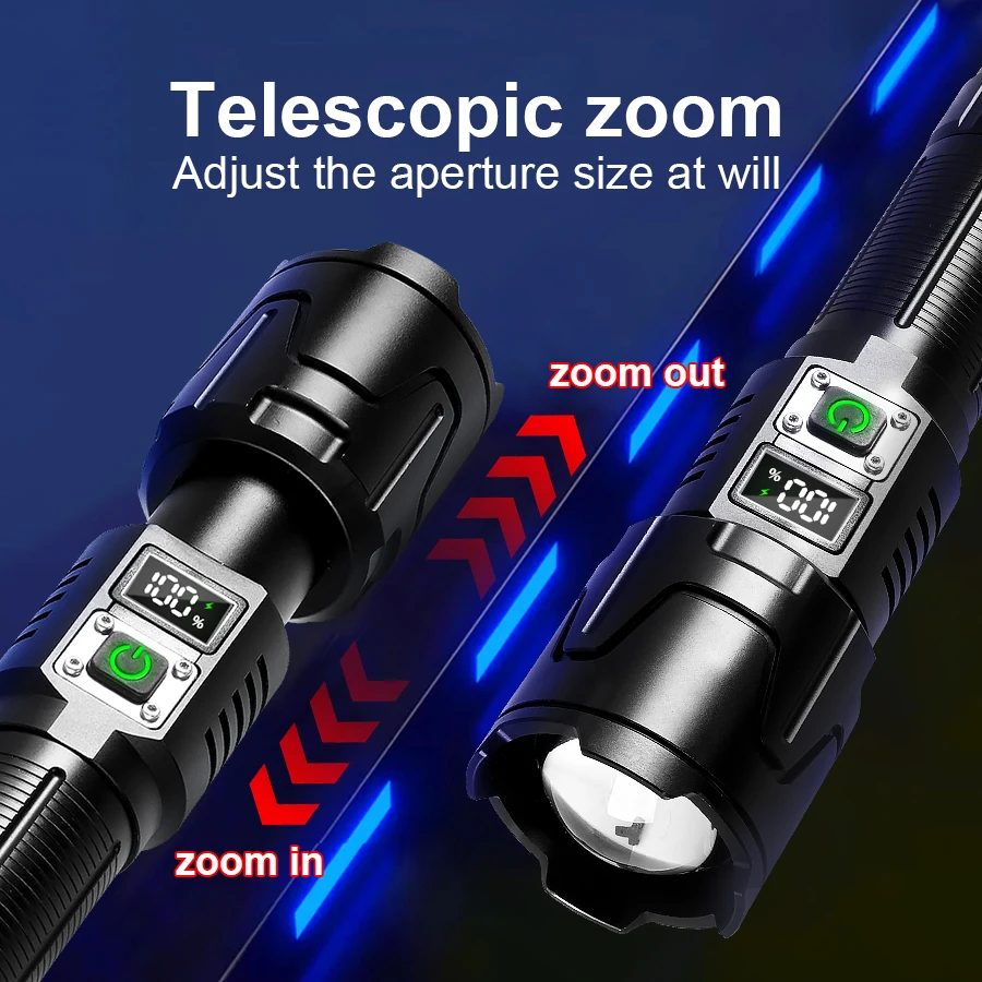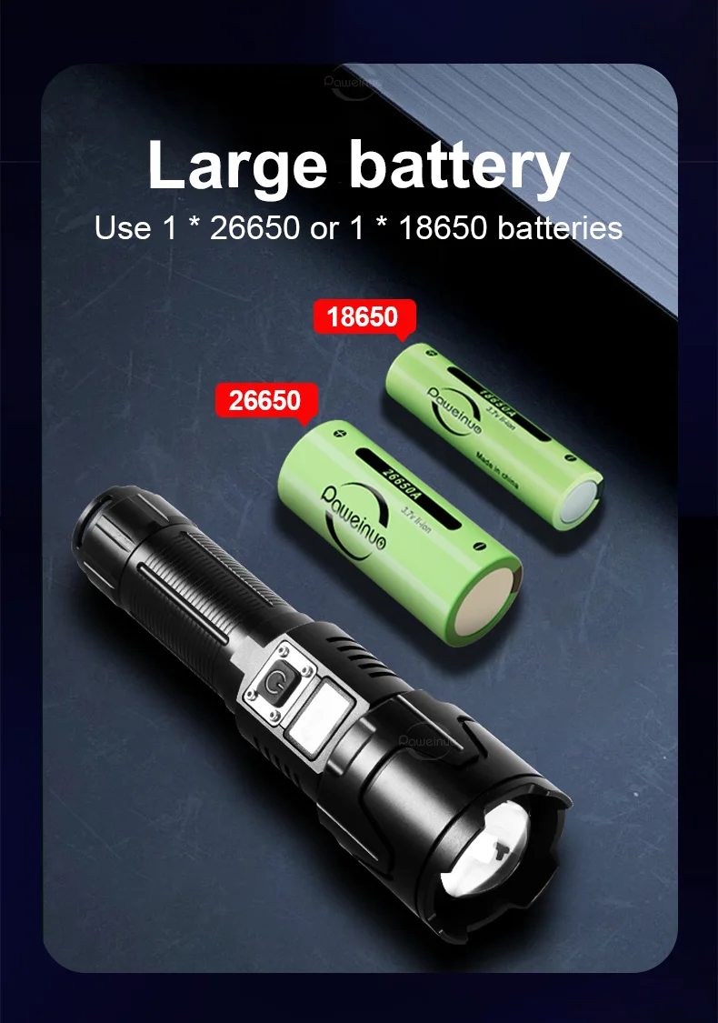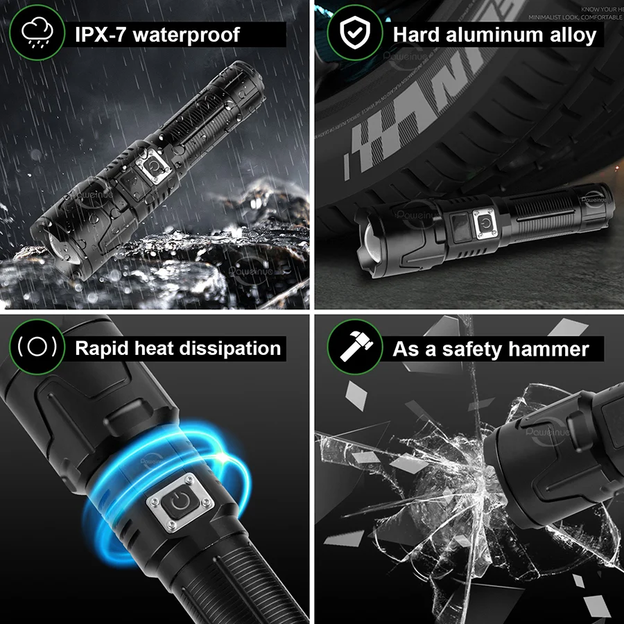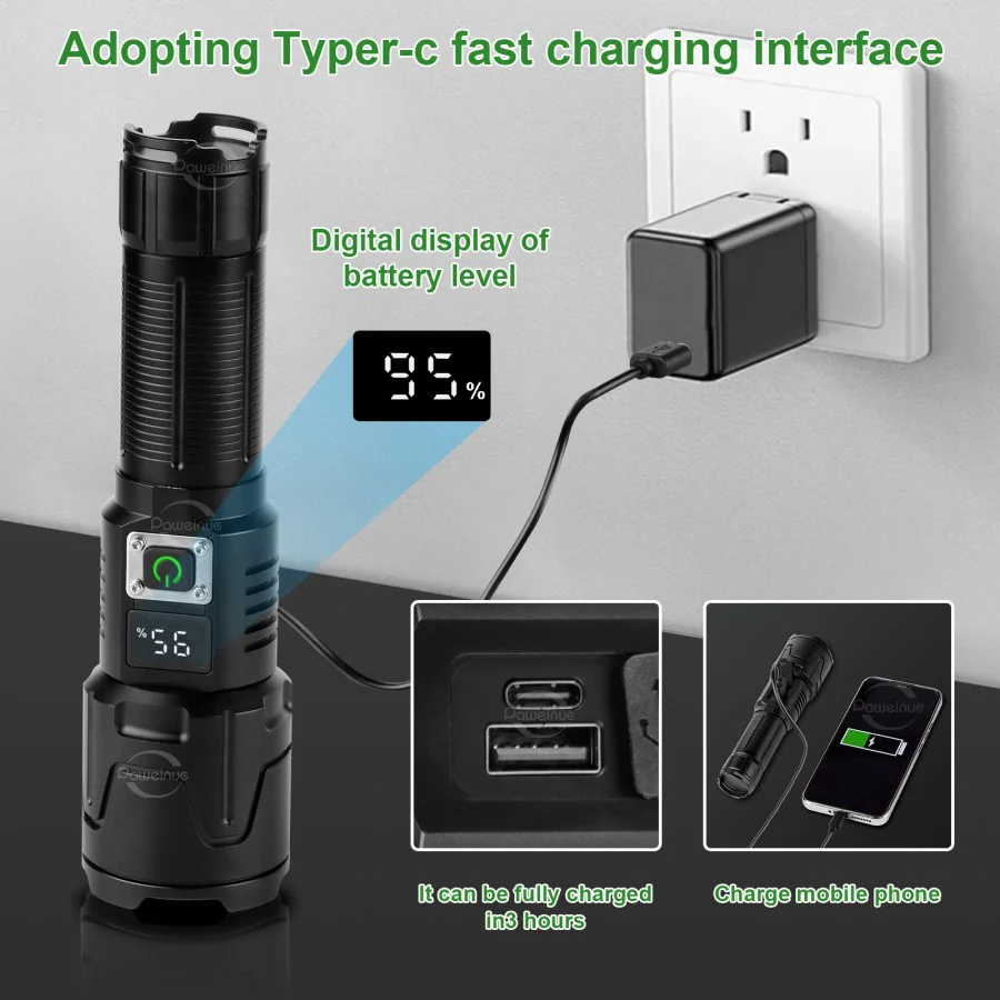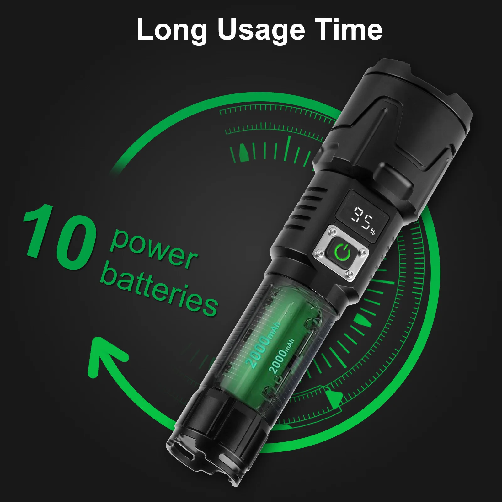 PAWEINUO Lanterna LED mais poderosa 5000000LM Super brilhante recarregável tocha luz zoom longo alcance 4500M lâmpada de pesca de acampamento