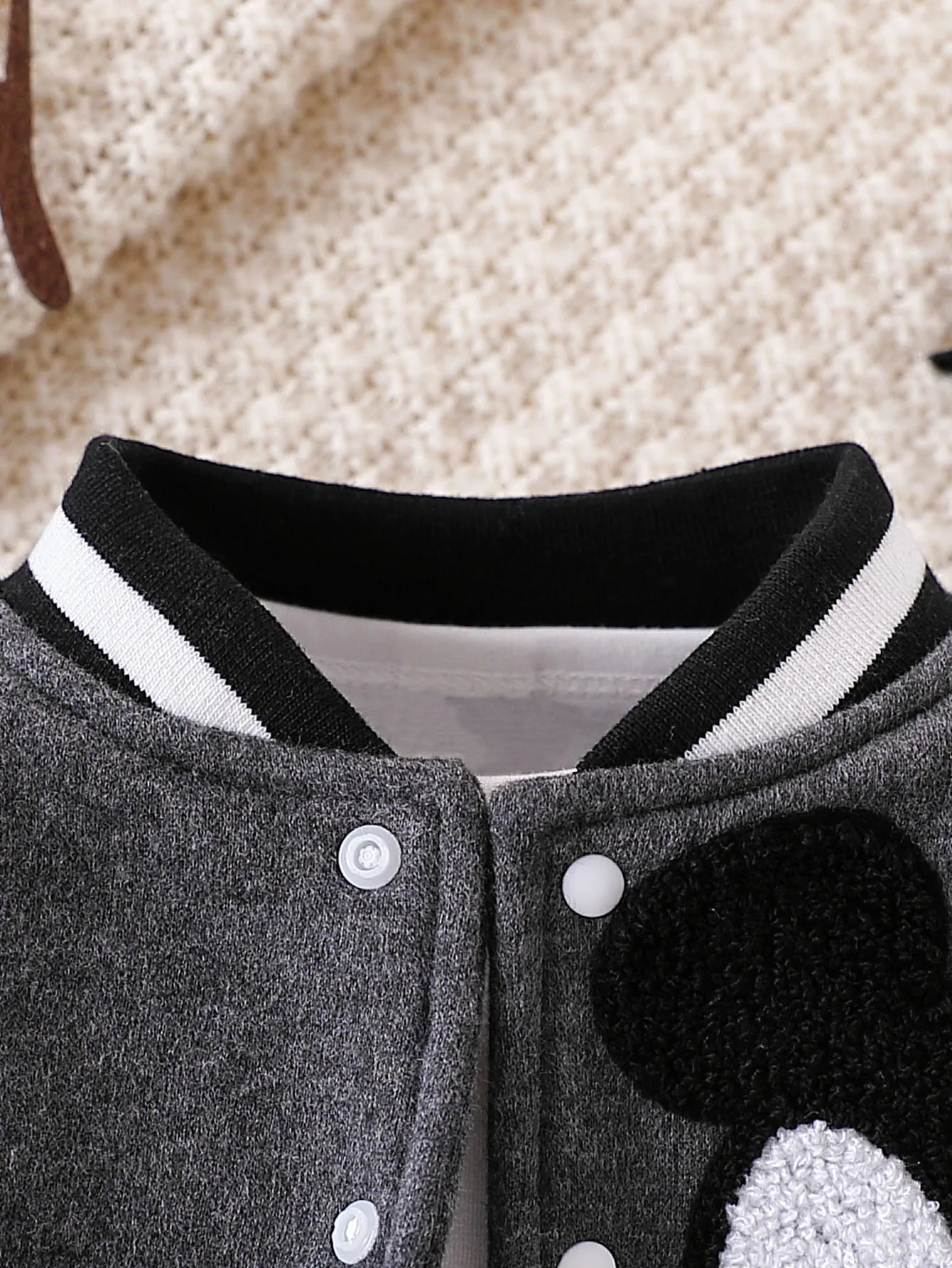 Peça única bebê menino moda desenho animado padrão animal suporte gravata bolso manga comprida jaqueta ao ar livre outono e inverno