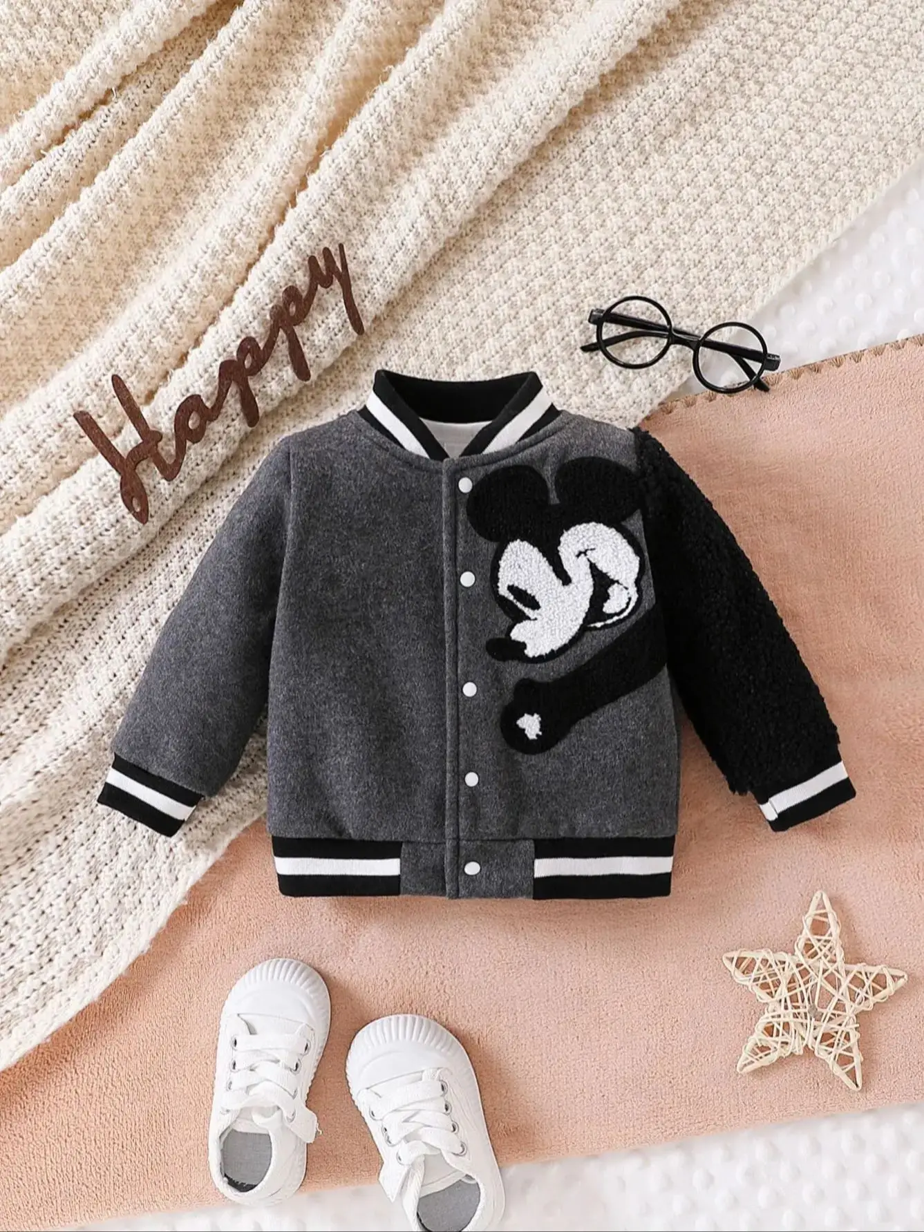 - > Peça única bebê menino moda desenho animado padrão animal suporte gravata bolso manga comprida jaqueta ao ar livre outono e inverno