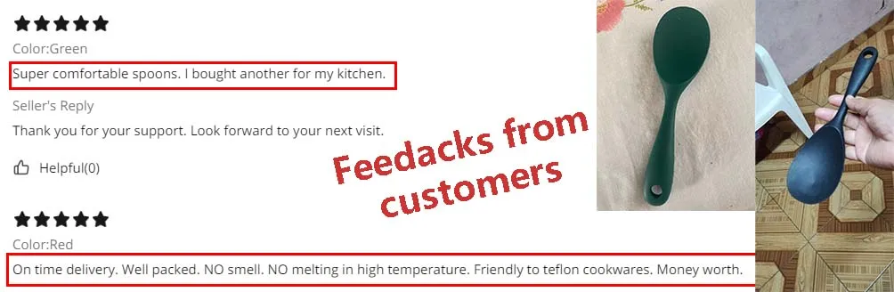 1. Alta qualidade: A colher é feita de sílica gel de alta qualidade e é projetada com um núcleo de aço inoxidável durável. Ele não se desvanece, deforma ou derrete, e pode suportar temperaturas de até 230 ℃.
