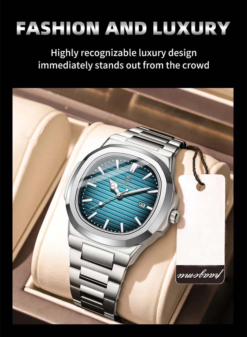 - > PENGAGAR Tendência Relógios Masculinos Clássico Moda Original Relógio de Quartzo para Homem Mostrador Quadrado À Prova D 'Água Luminosa Data Relógio de Pulso Reloj