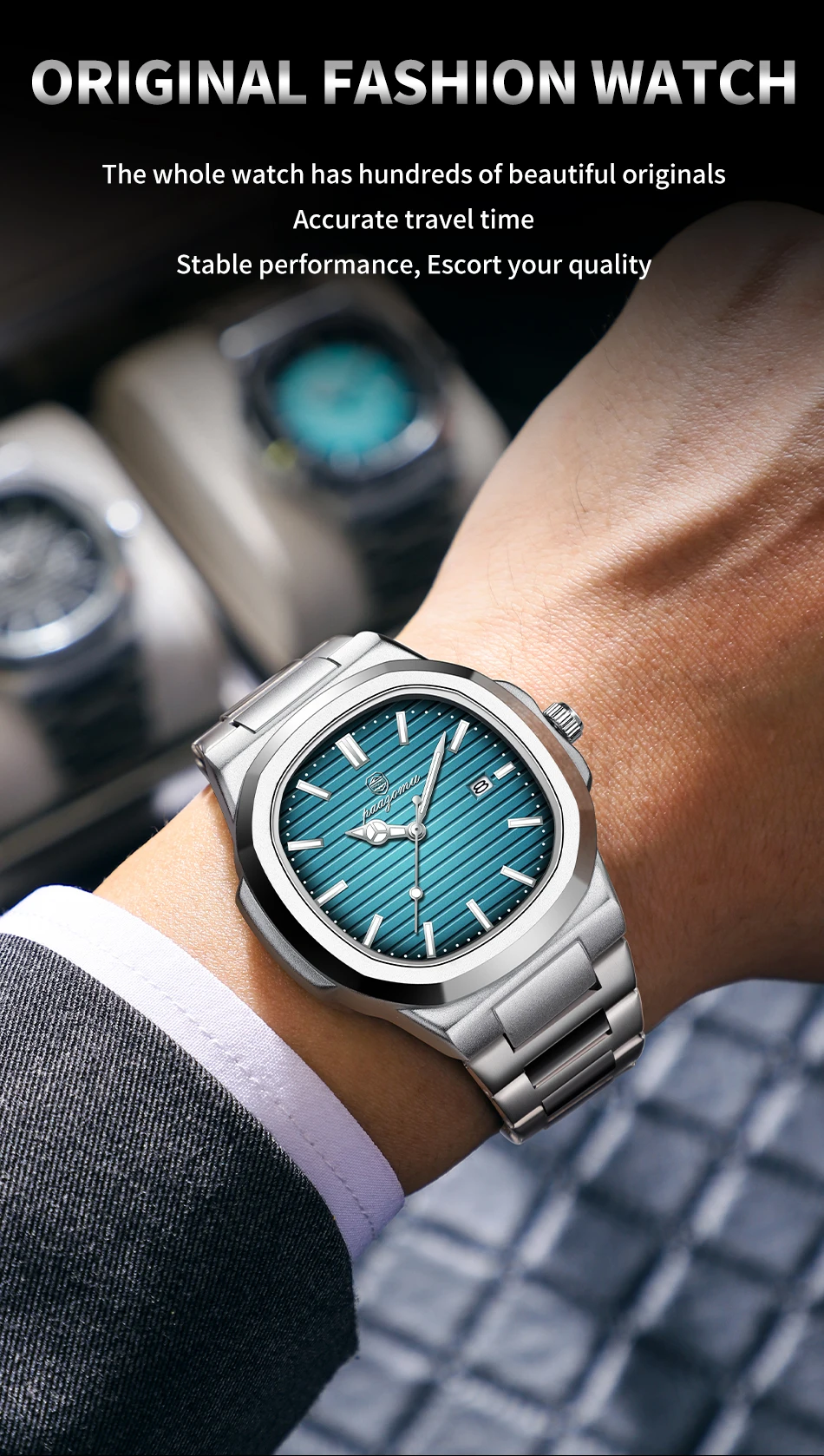 PENGAGAR Tendência Relógios Masculinos Clássico Moda Original Relógio de Quartzo para Homem Mostrador Quadrado À Prova D 'Água Luminosa Data Relógio de Pulso Reloj