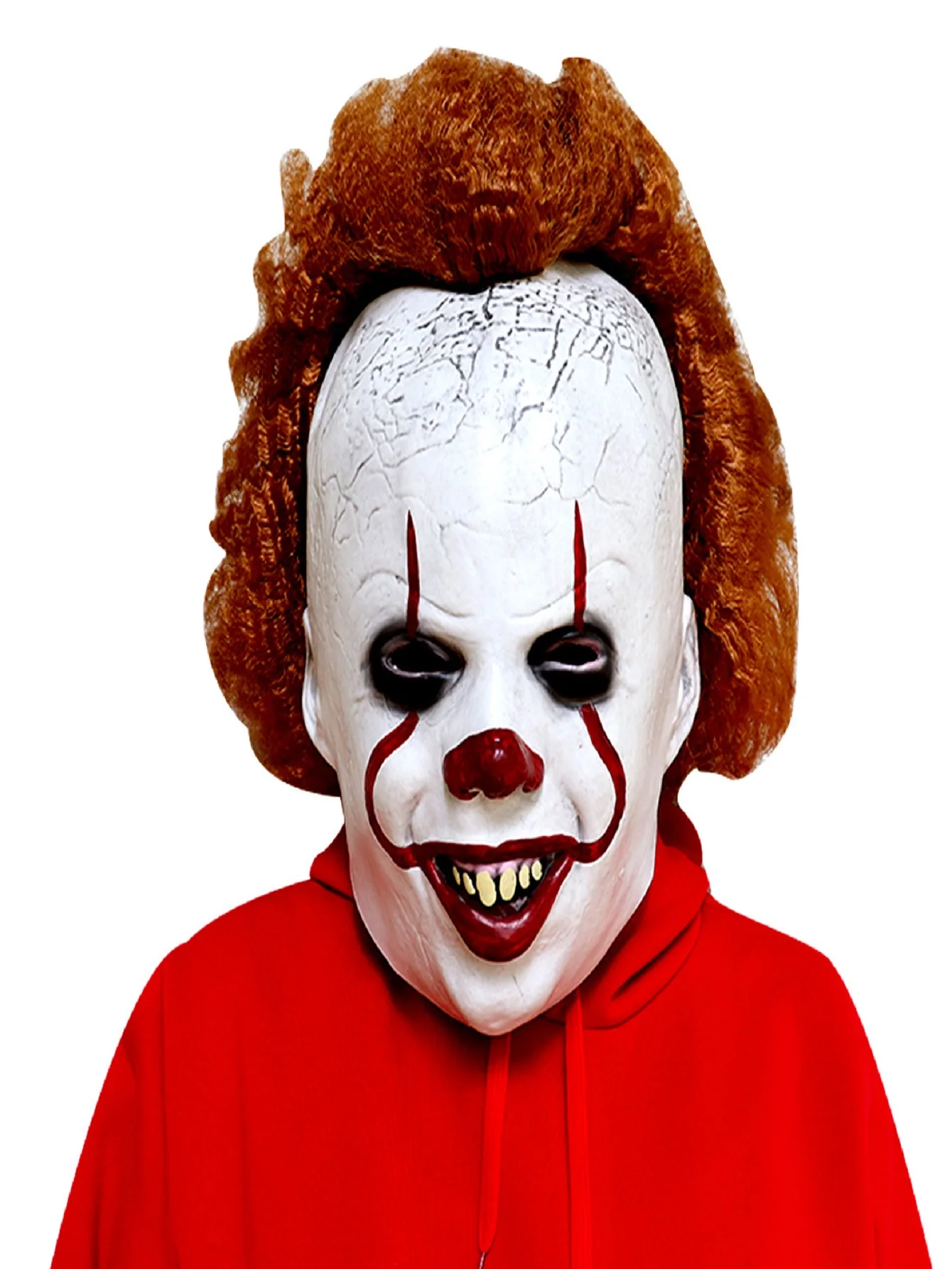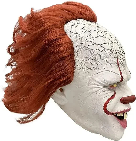 Terrivelmente realista: O pennywise aterrorizante chapelaria rosto fantasma altamente restaura a imagem aterrorizante no filme. Os detalhes são assustadores. Se é o rosto feroz, penteado estranho ou cores misteriosas, pode criar instantaneamente uma atmosfera aterrorizante e torná-lo o foco de festas de Halloween.