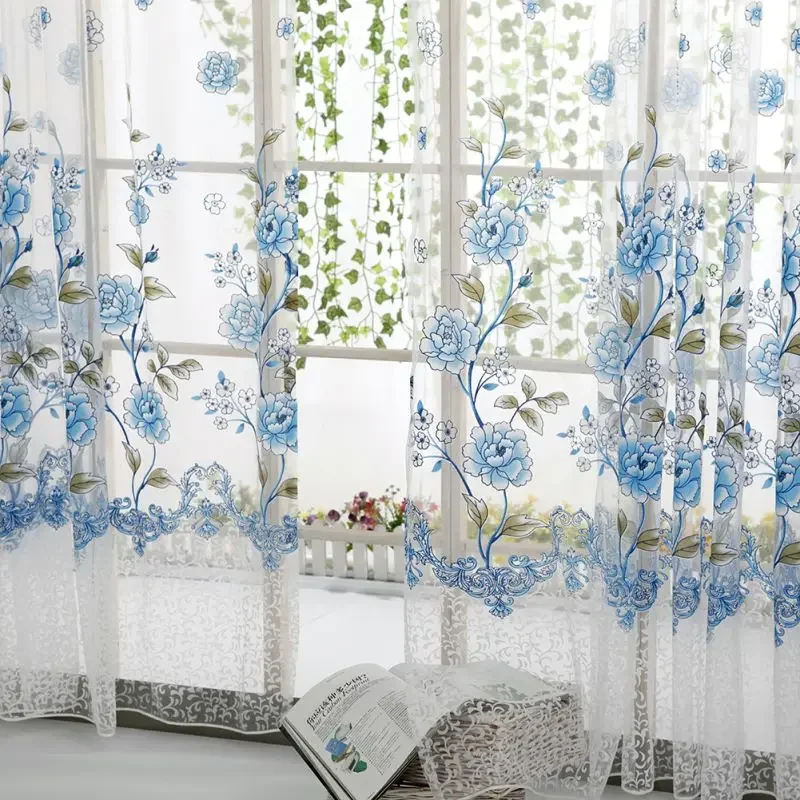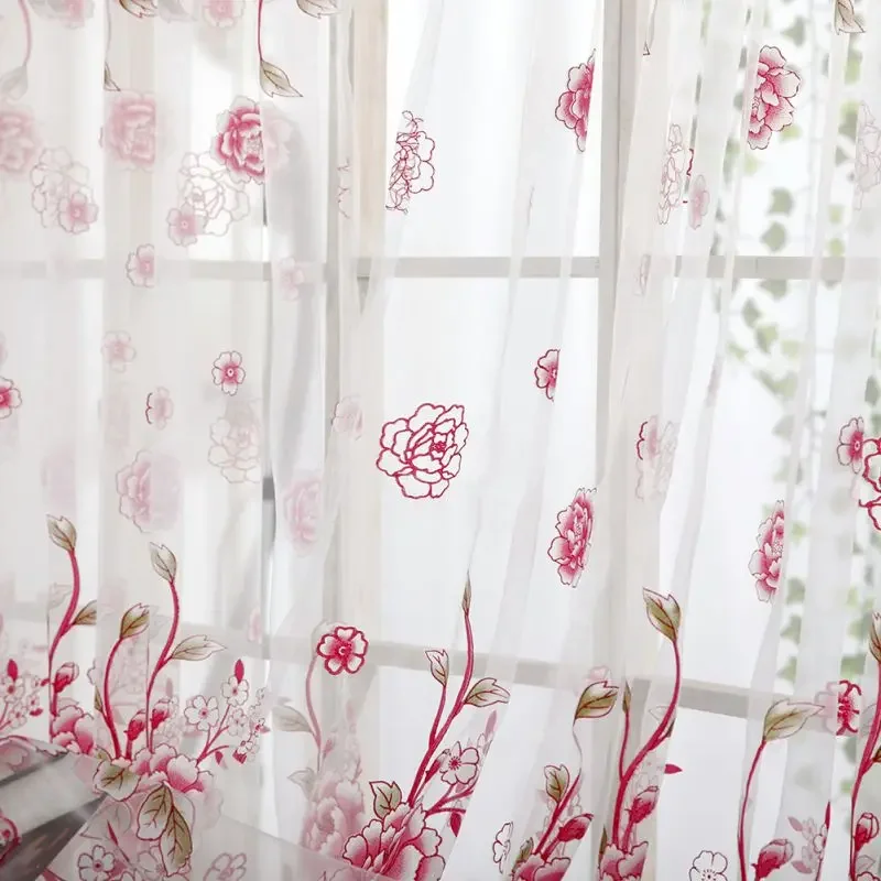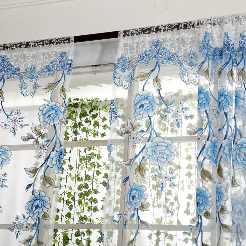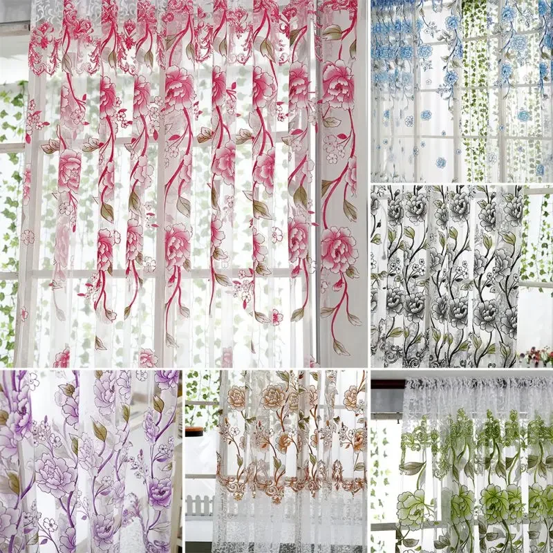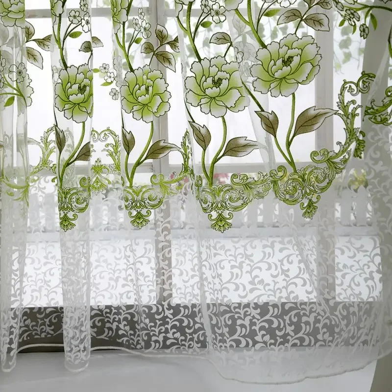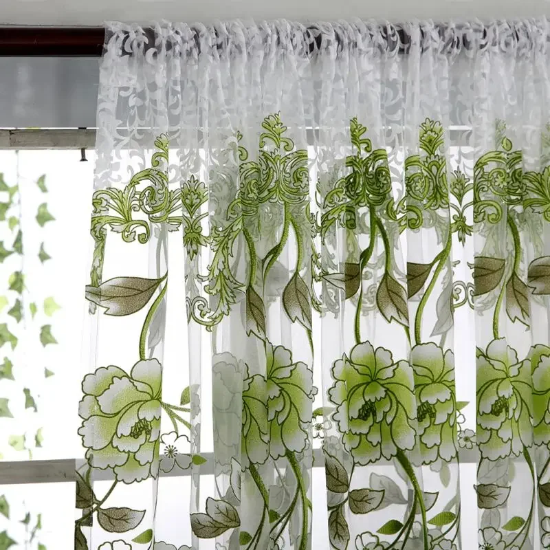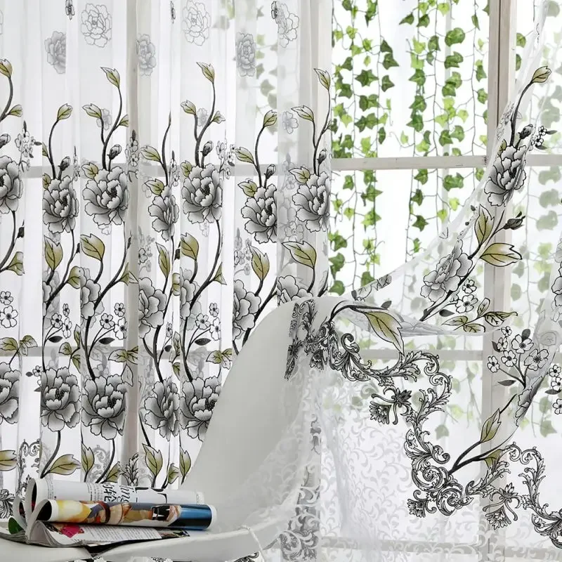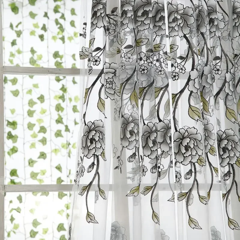Peony Tule Cortinas para Porta e Janela da Cozinha, Jacquard Sheer Voile, Cortinas de Fios, Sala e Quarto, 100x200cm, Y, 1PC