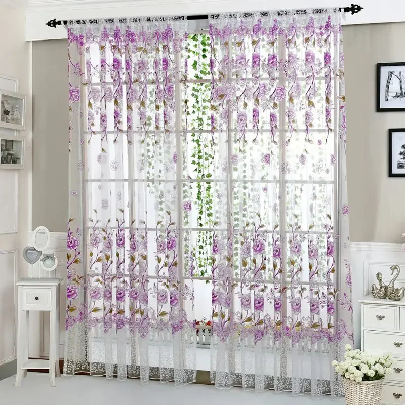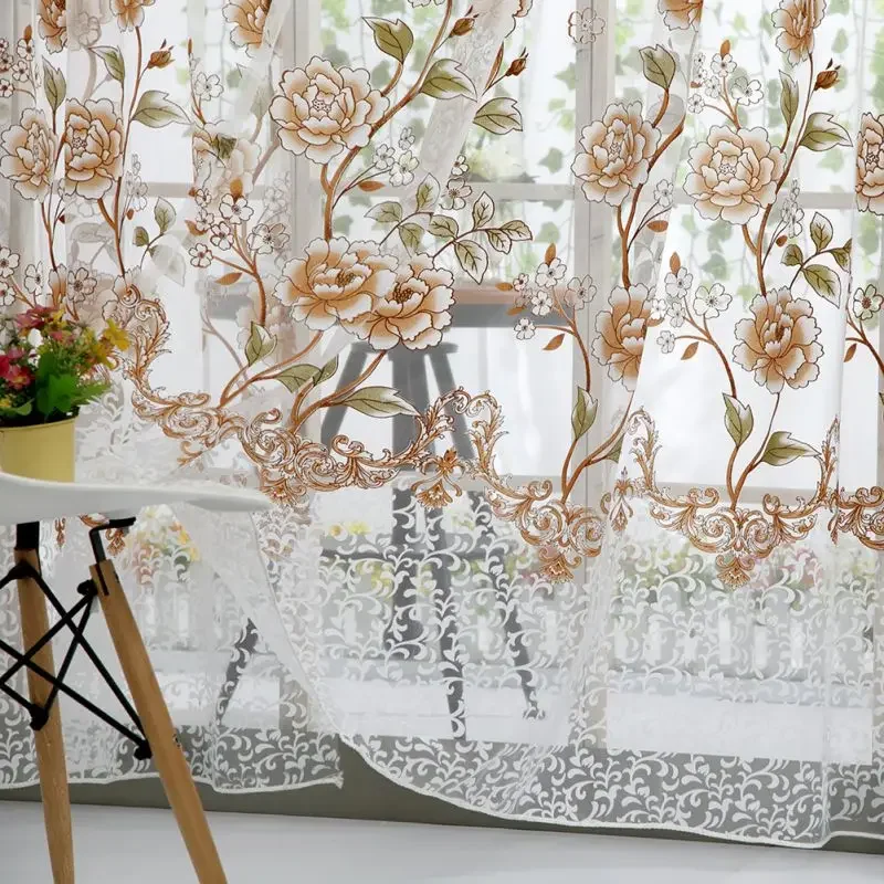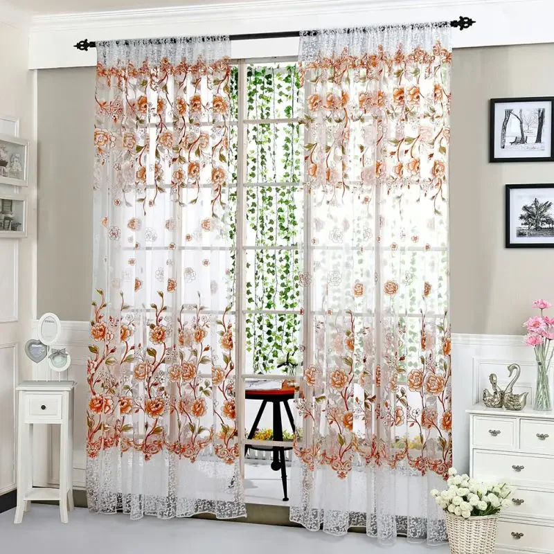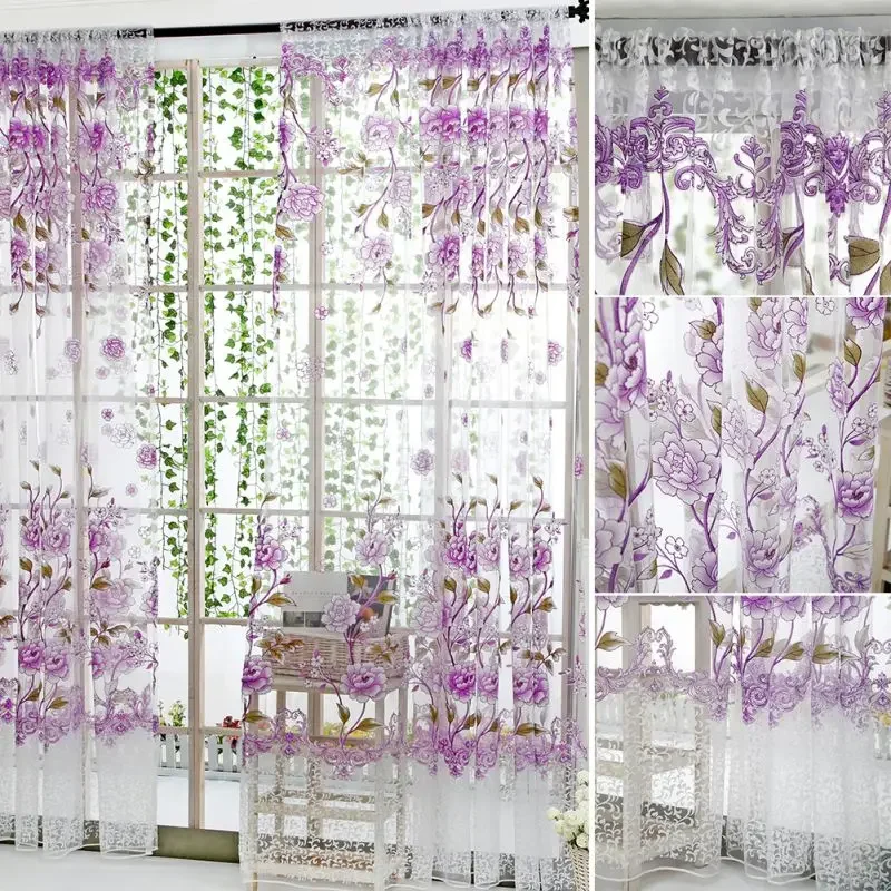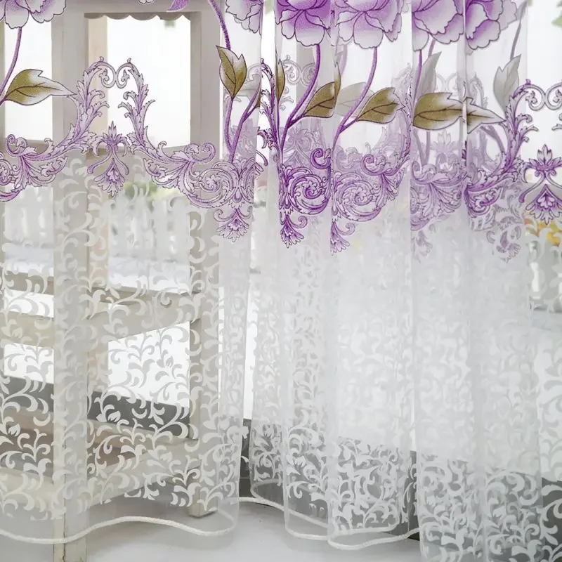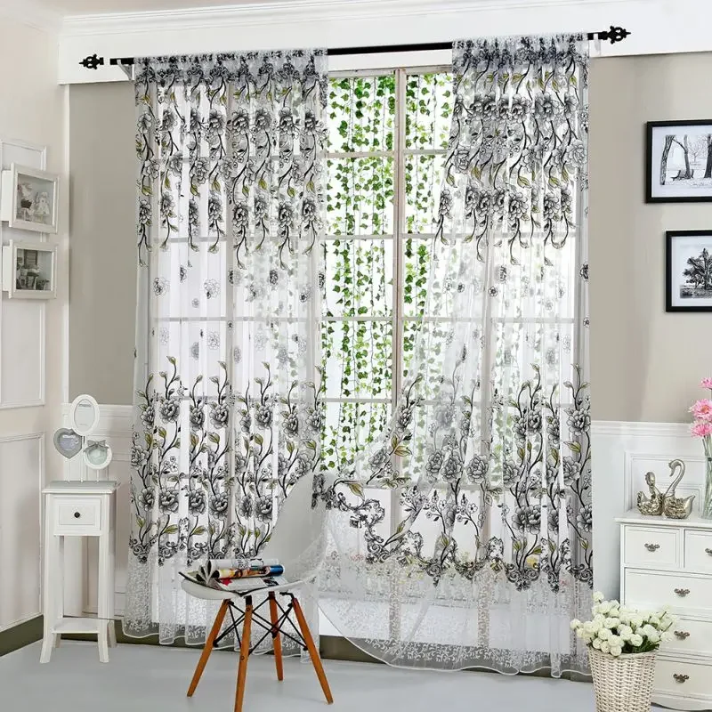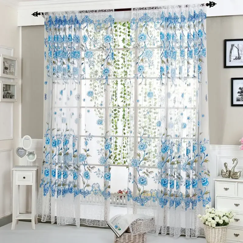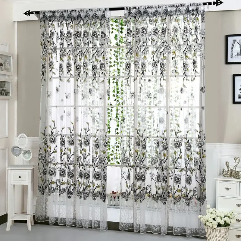 Peony Tule Cortinas para Porta e Janela da Cozinha, Jacquard Sheer Voile, Cortinas de Fios, Sala e Quarto, 100x200cm, Y, 1PC