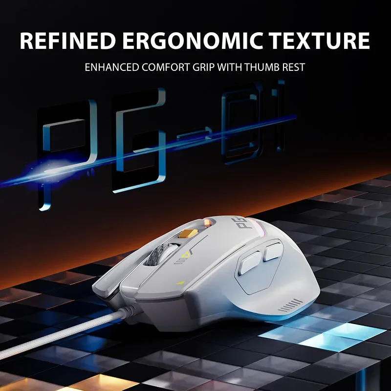 - > PG-01 Mouse para jogos com fio RGB Backlight Programação macro 12800DPI 7000FPS 1000HZ Taxa de retorno 60IPS Ergonômico E-sports Mouse