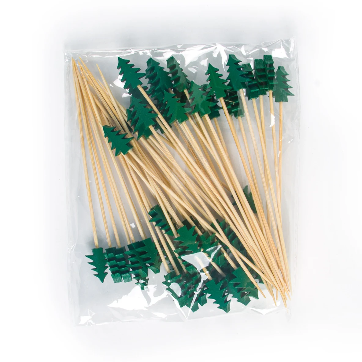 Picaretas De Cocktail De Bambu Do Natal, Papai Noel, Árvore do floco de neve, Beber Fruta, Sobremesa, Comida Palitos, Decoração Festa, Natal, 50Pcs, 2024