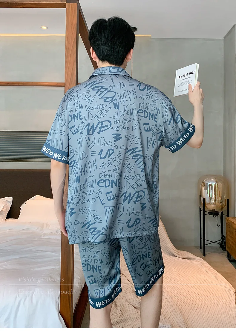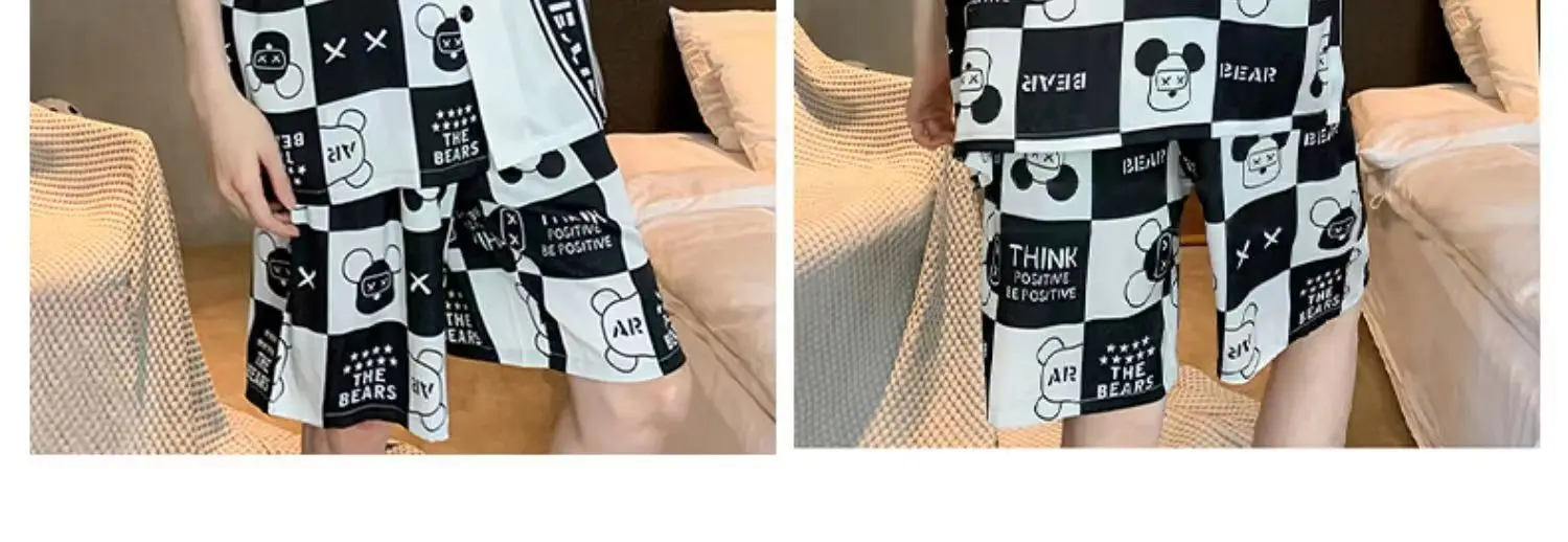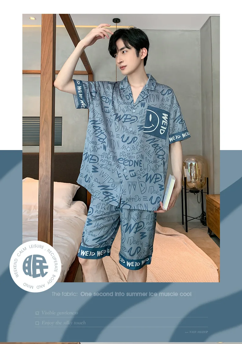 - > Pijama de seda gelo de duas peças masculino, shorts de manga curta, seção fina, estudante, terno homewear adolescente, verão, novo