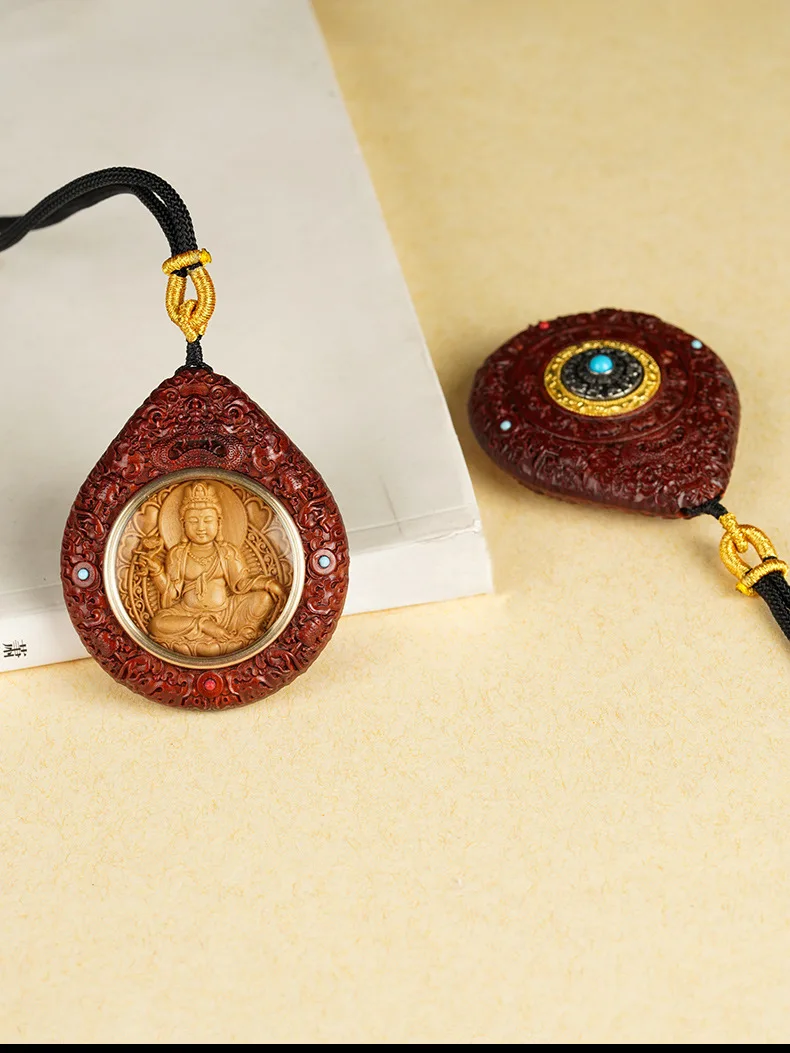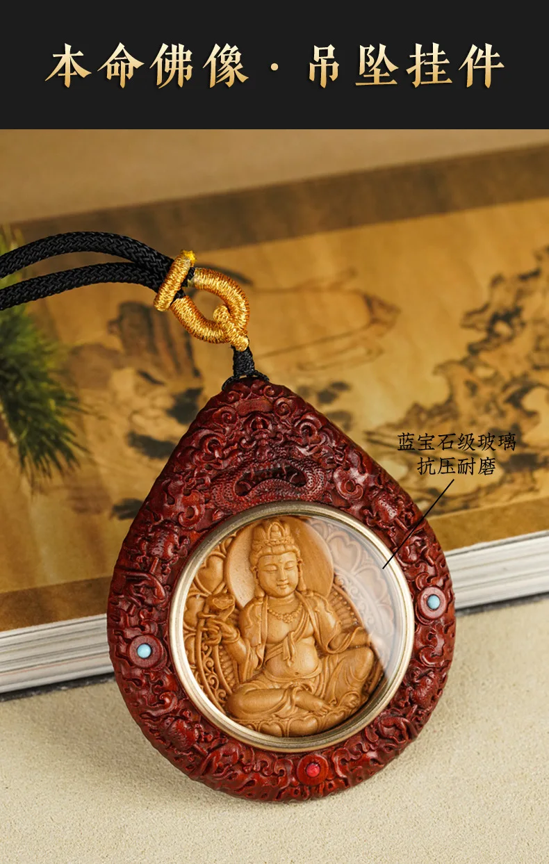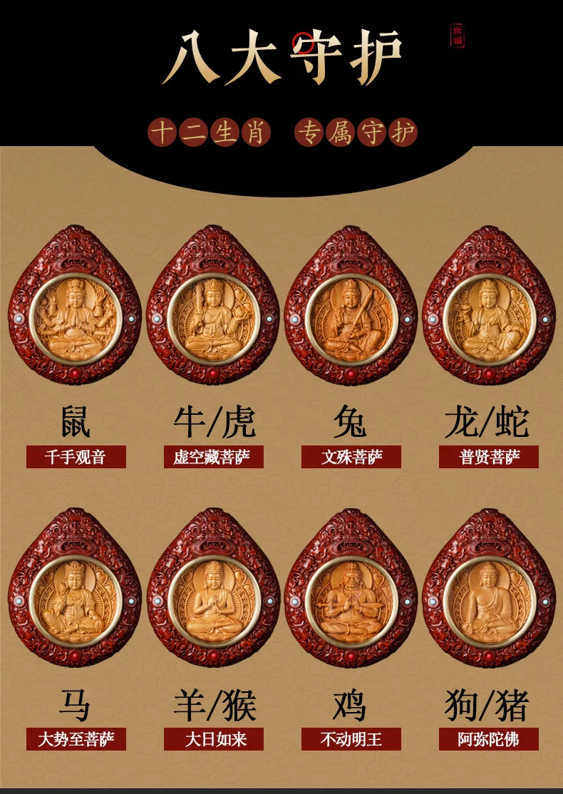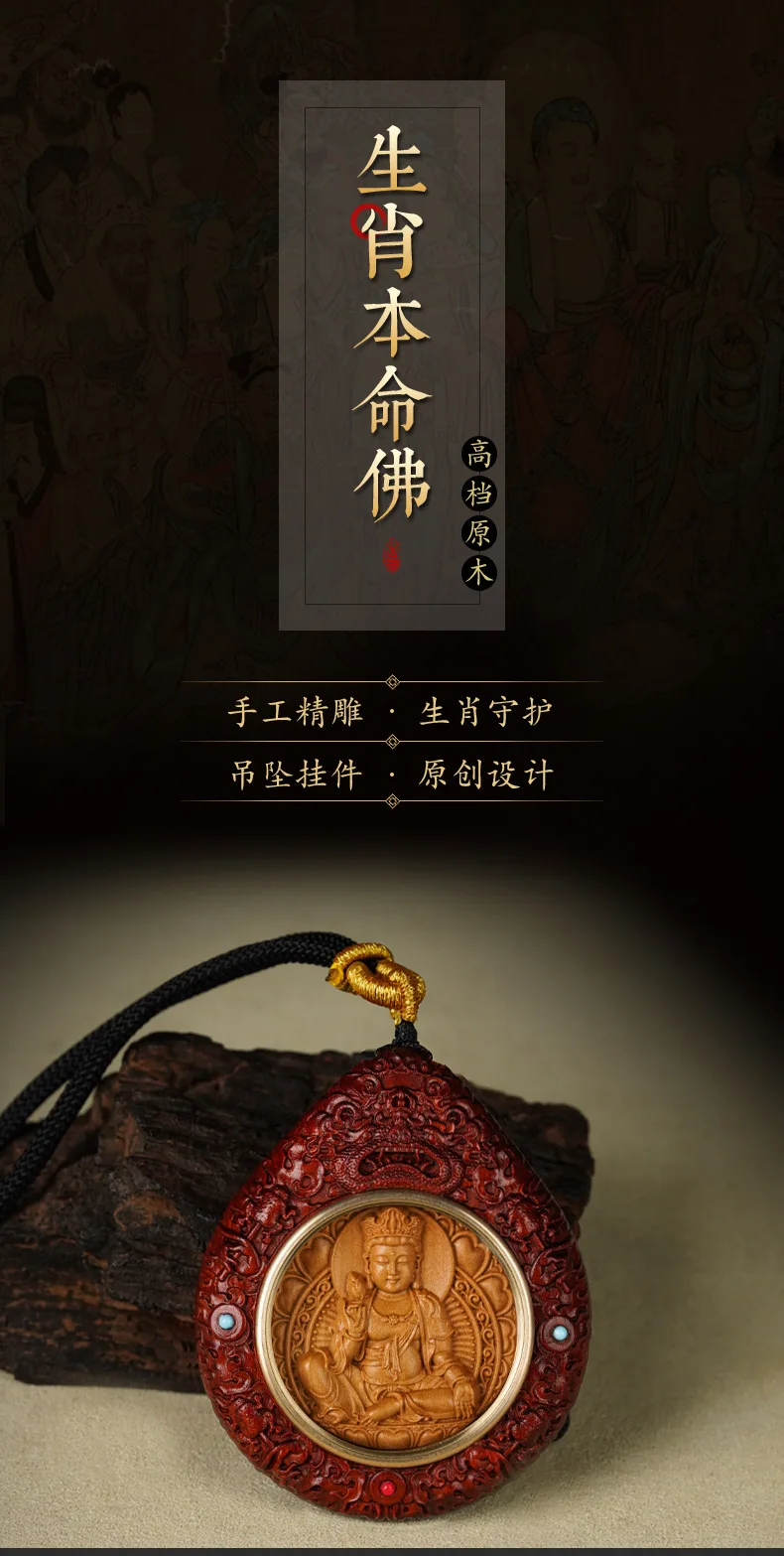 - > Pingente de mogno natural esculpido à mão, high-end, zodíaco, oito tesouros, vida sagrada, amuleto, colar, carro, pendurado, amitabha, cachorro, porco