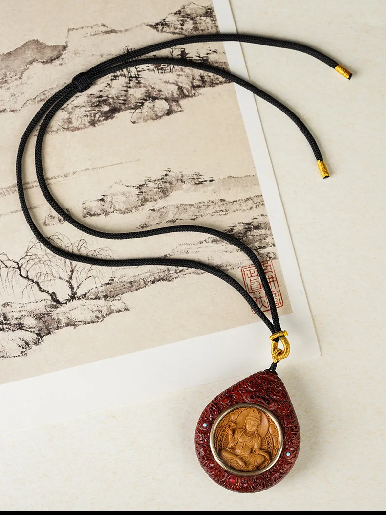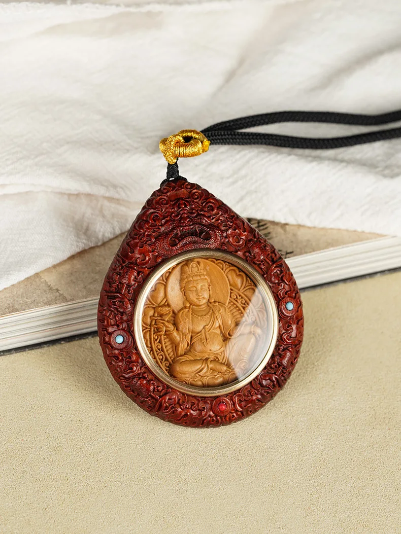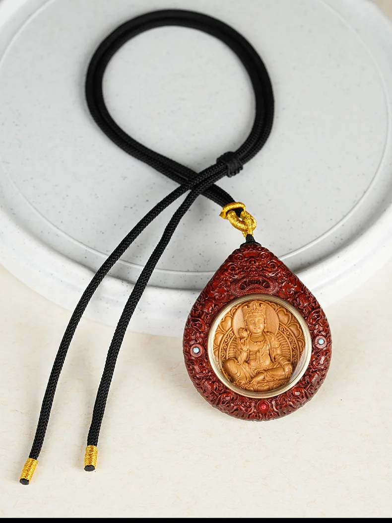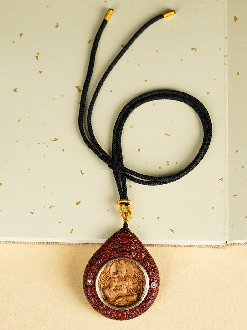 - > Pingente de mogno natural esculpido à mão, high-end, zodíaco, oito tesouros, vida sagrada, amuleto, colar, carro, pendurado, amitabha, cachorro, porco