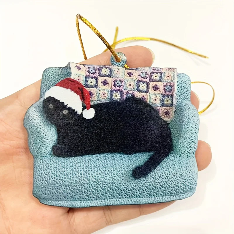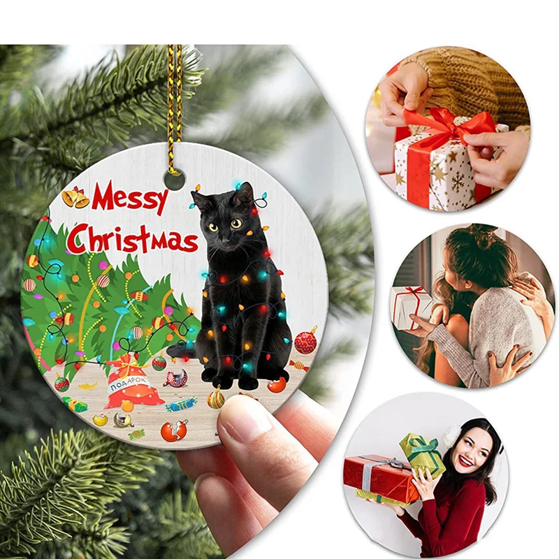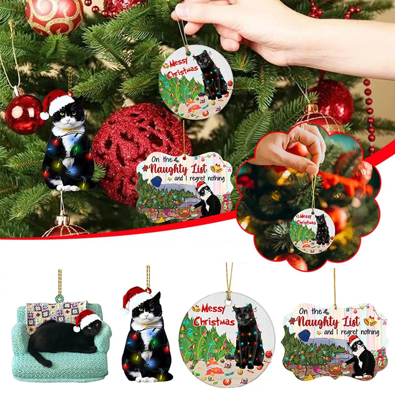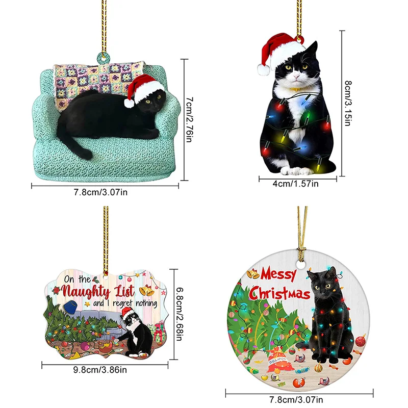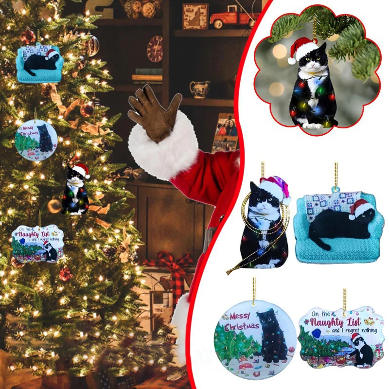 Pingente De Natal De Acrílico Gato Preto, Xmas Tree Hanging Animal Ornamentos, Decoração De Festa De Casa, Casamento, Ano Novo