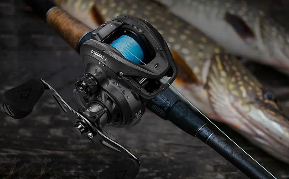 4.[Mecânica pronta para tornamentos] O Torrent II incorpora 7 rolamentos de cartucho selados resistentes à corrosão com um sistema de oscilação de carretel com suporte de rolamento duplo, minimizando a perda de energia cinética.