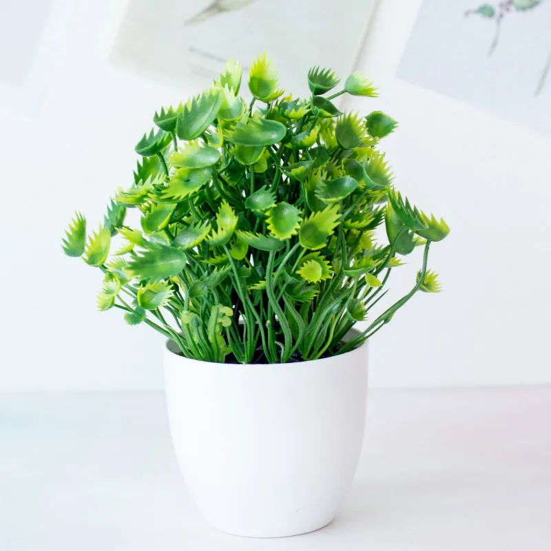 - > Plantas artificiais verdes bonsai, pequena árvore, flores falsificadas, ornamentos em vasos, decoração para casa, decoração do jardim do hotel, 1 pc