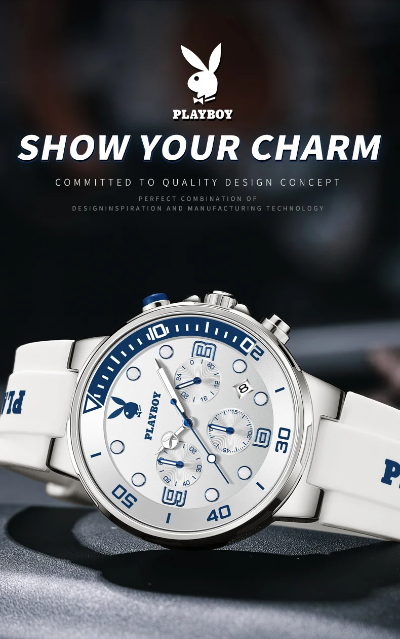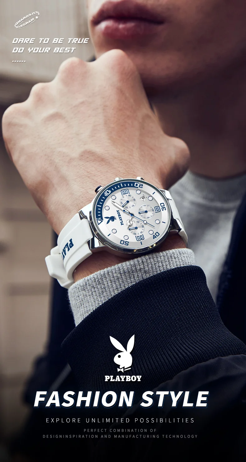PLAYBOY-Relógios de pulso quartzo impermeável masculino, relógios esportivos, pulseira de silicone, relógio de luxo, marca top, 2022