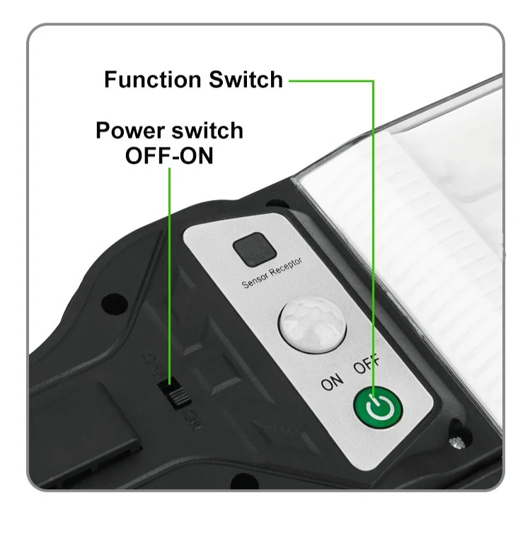 Modo 1: modo de detecção do corpo humano (a potência da luz é 100% de brilho quando o apesso passa e desliga após 20 segundos)
