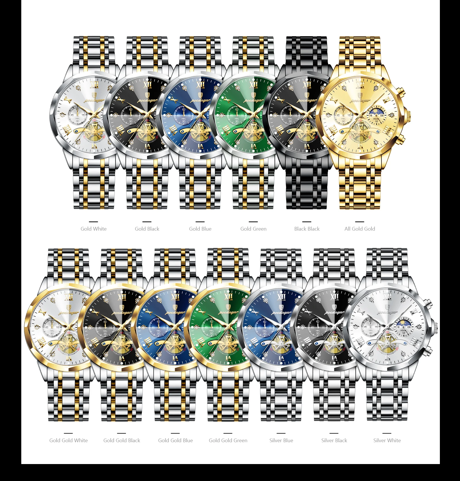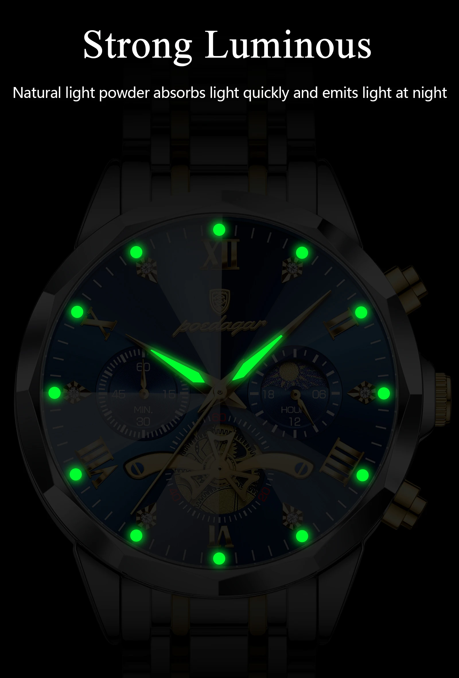 Poedagar luxo relógio masculino topo original à prova dwaterproof água luminosa cronógrafo homem relógio de pulso aço inoxidável quartzo relógios masculinos reloj