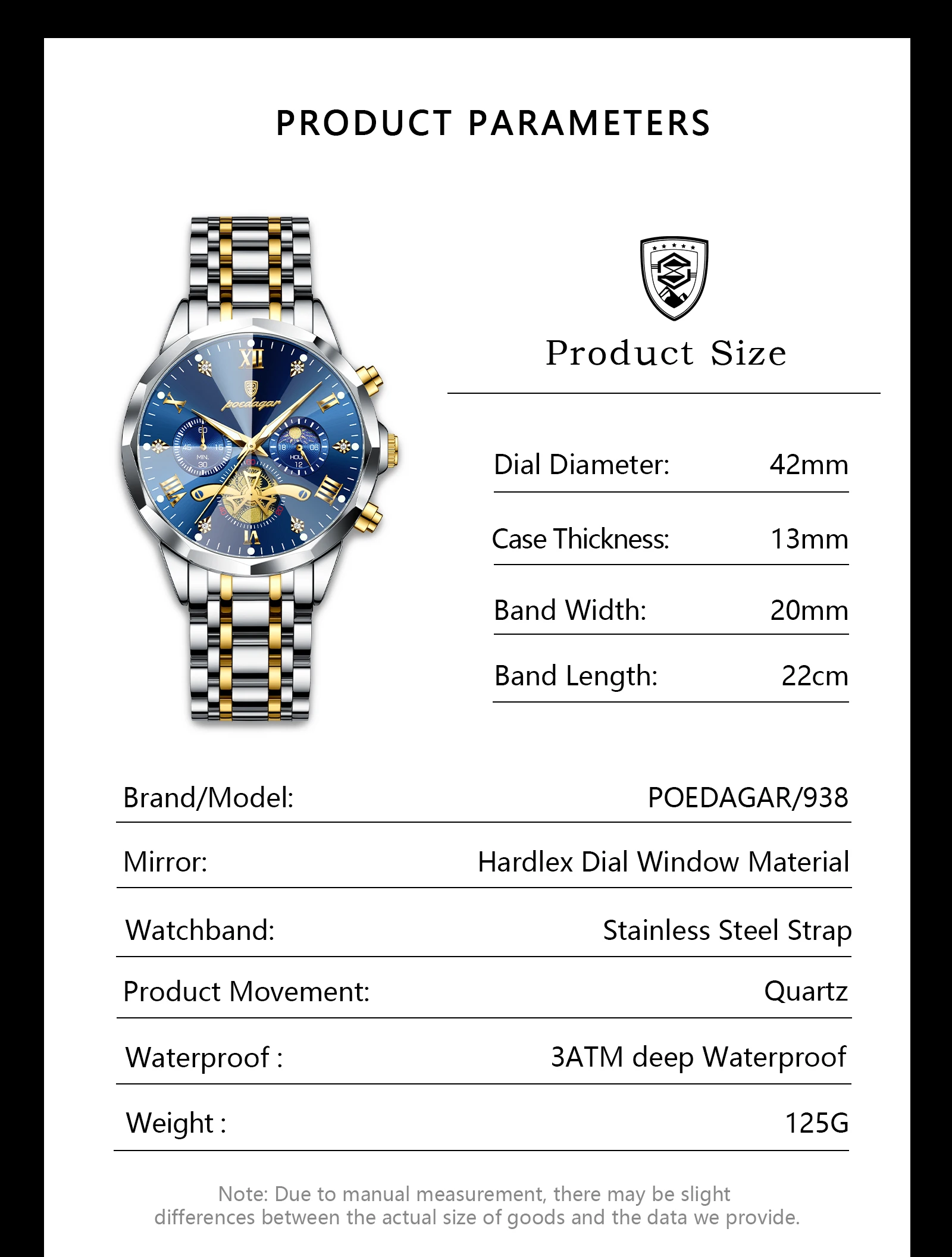 Tipo de matéria da pulseira: Aço inoxidável