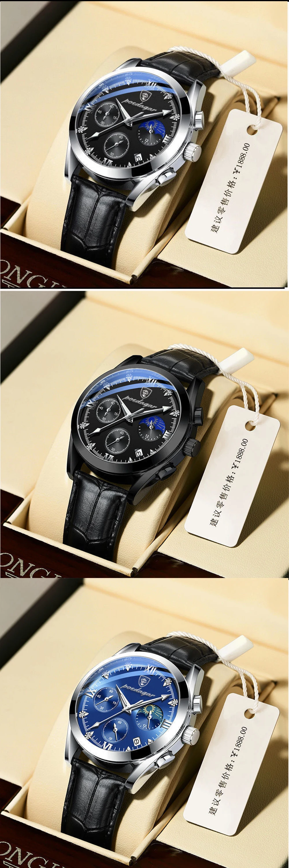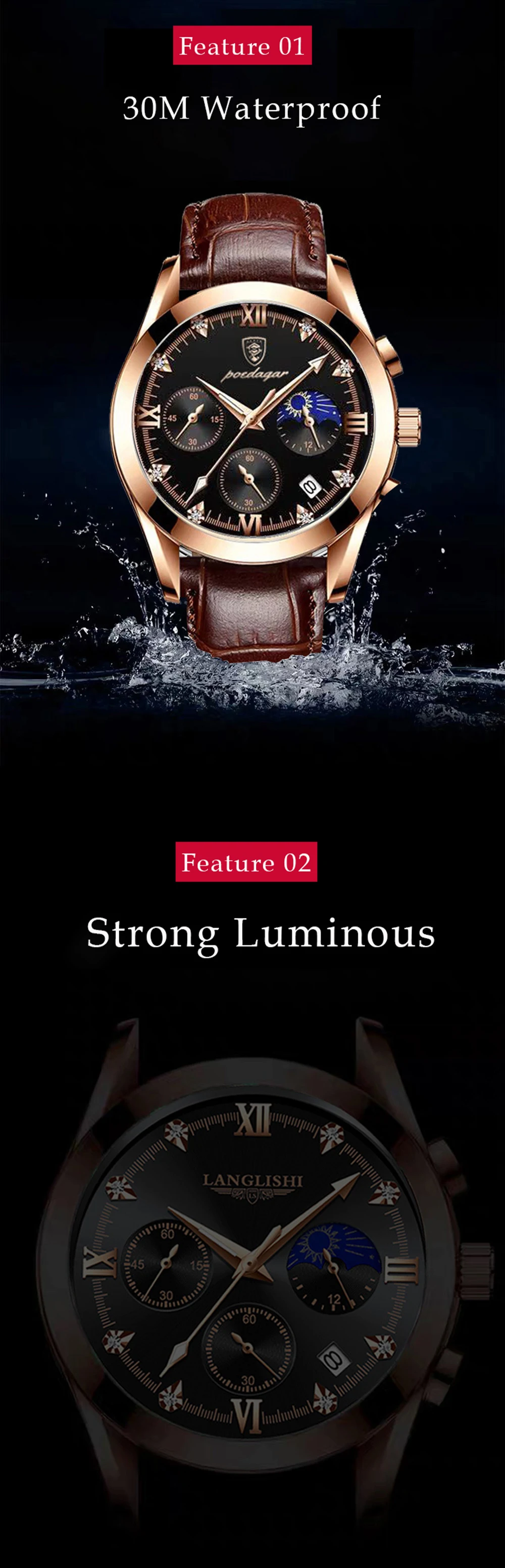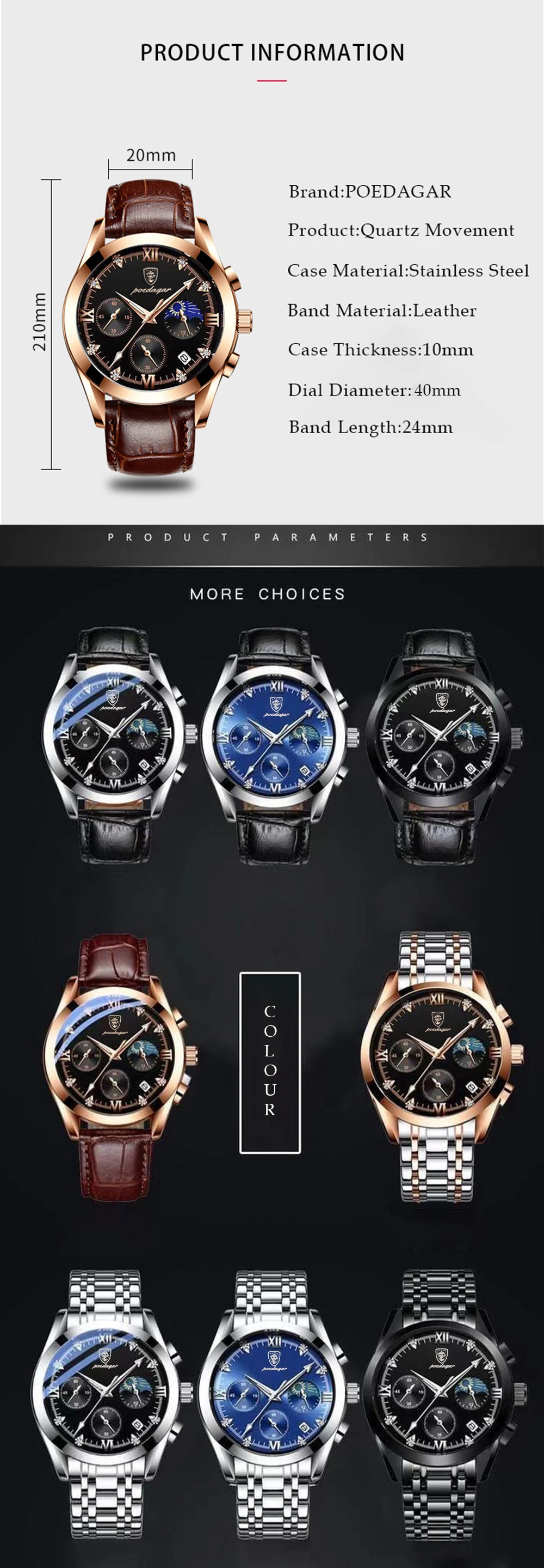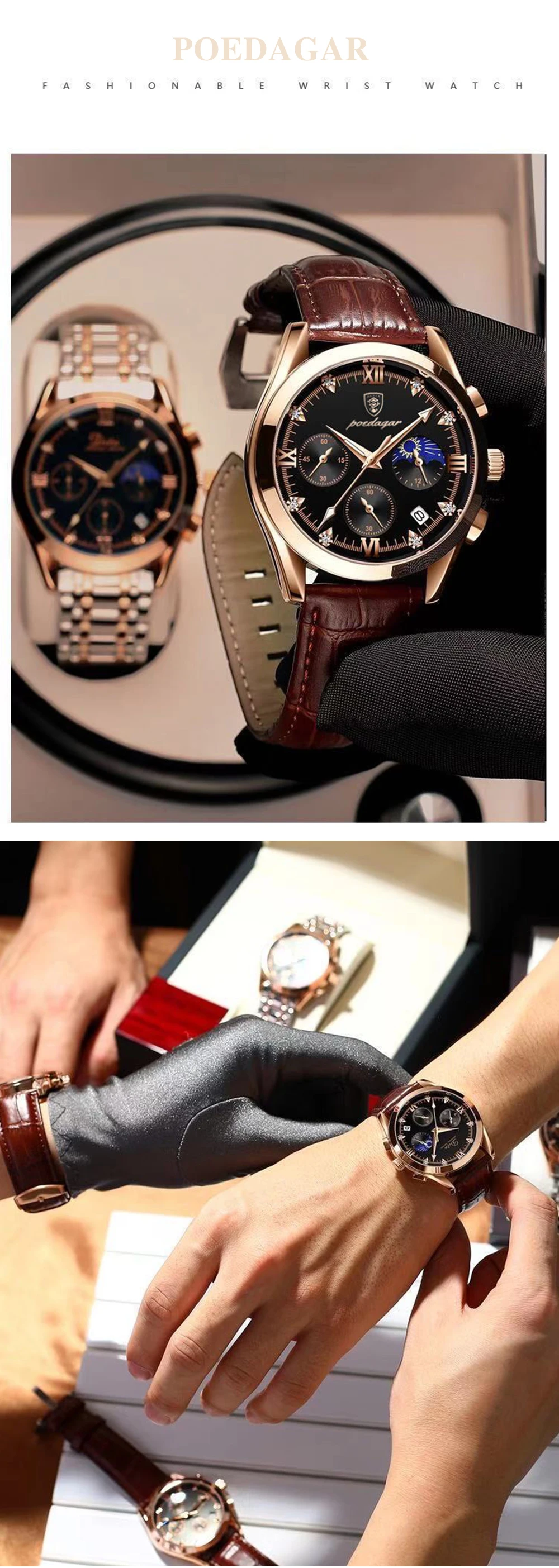 - > Poedagar nova moda masculina relógio de topo marca luxo couro quartzo relógio pulso esportes à prova dwaterproof água luminosa data masculino + caixa