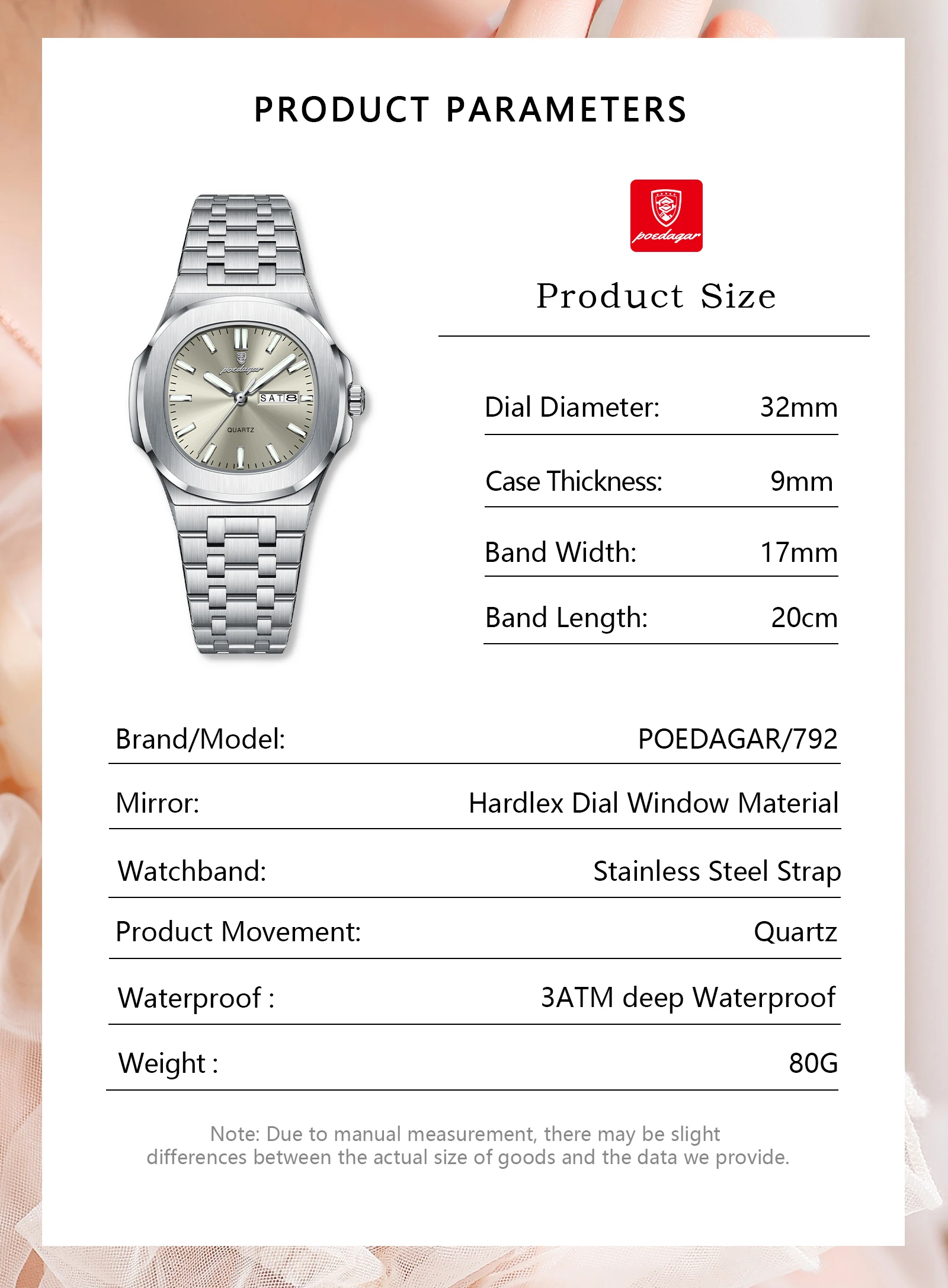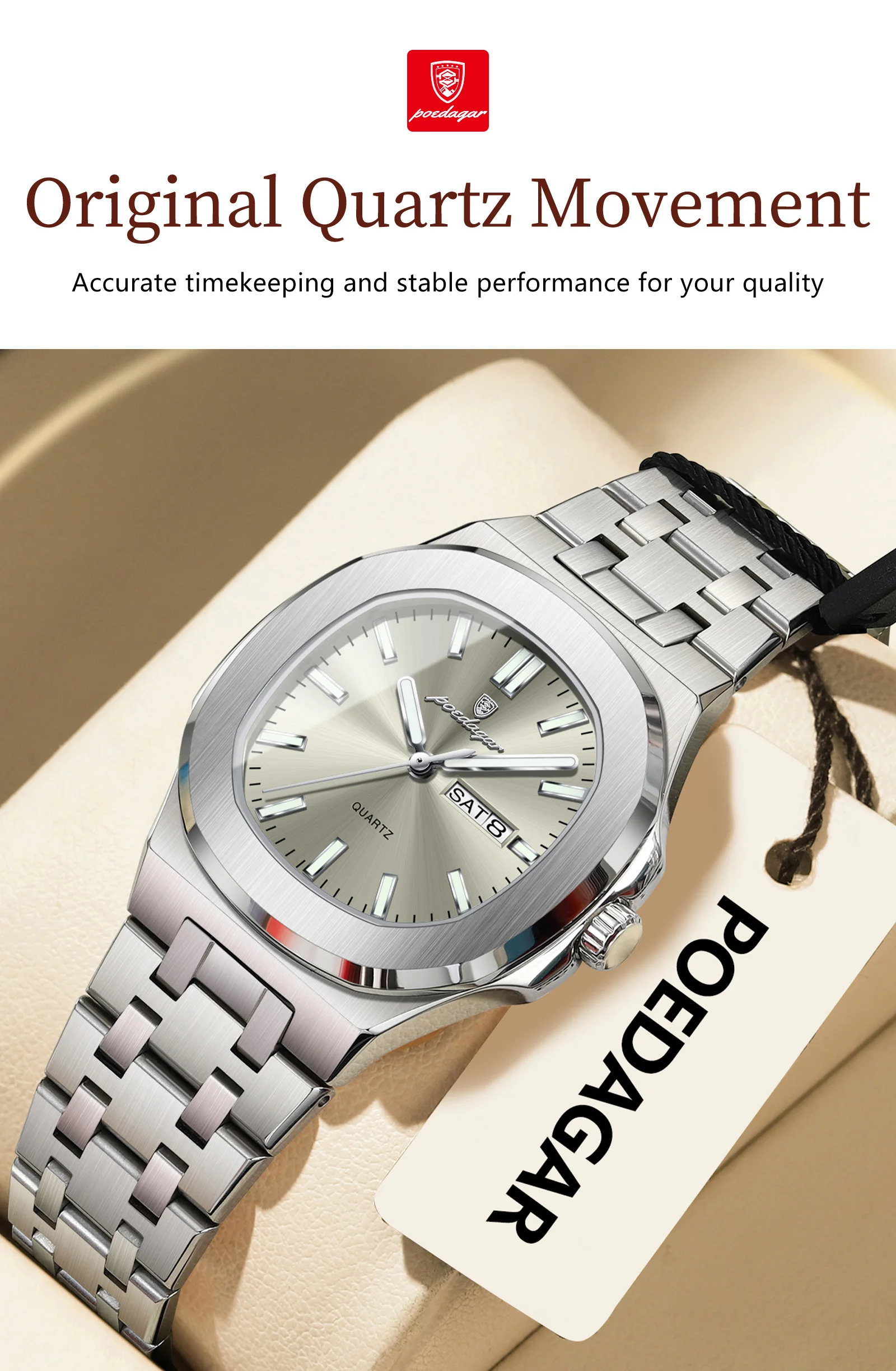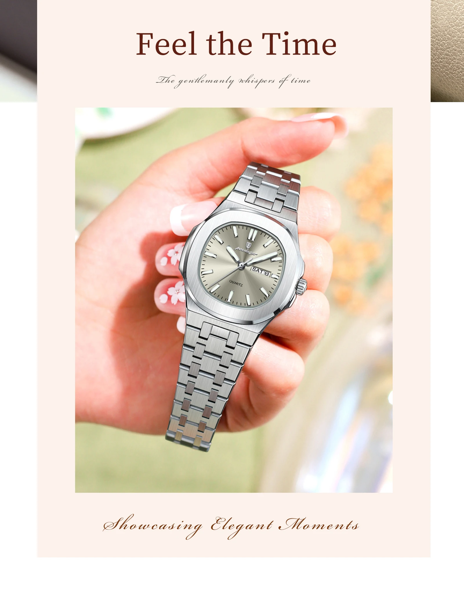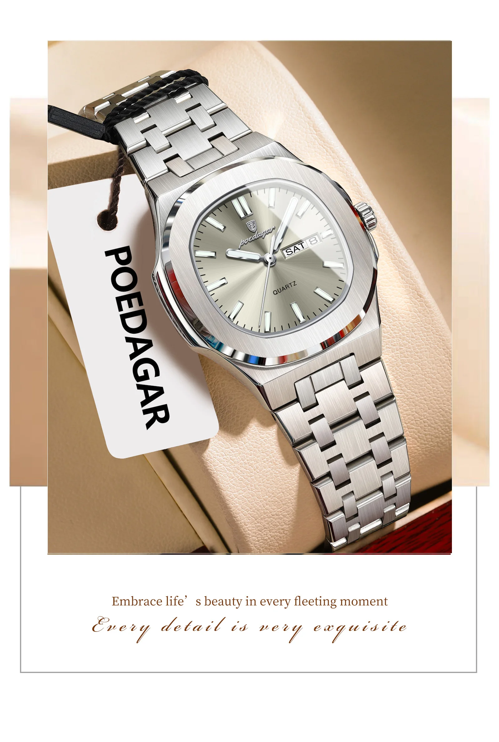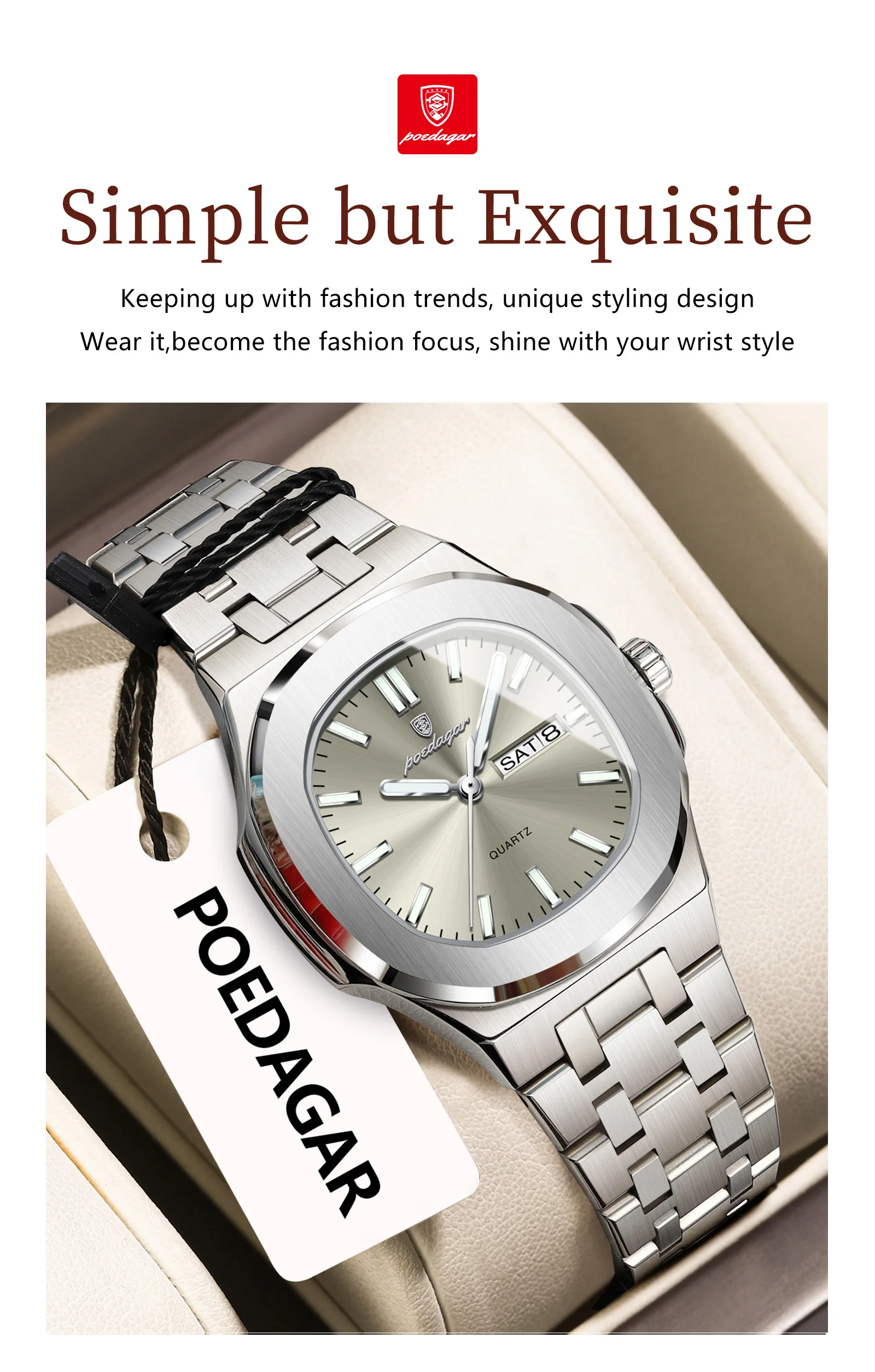 - > Poedagar quadrado moda relógio para mulher luminosa à prova dwaterproof água data semana senhoras relógio de aço inoxidável quartzo casual relógios femininos