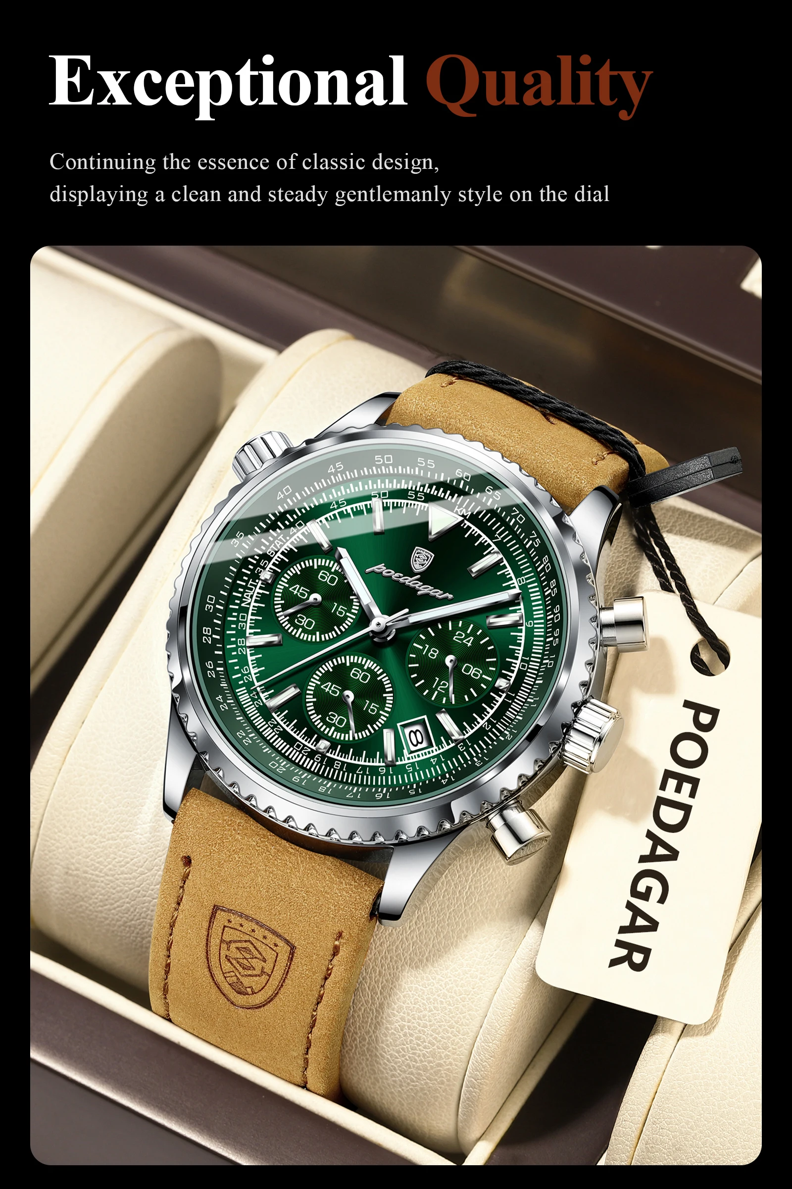 - > Poedagar relógio masculino de negócios de luxo à prova dwaterproof água luminosa data cronógrafo couro homem relógio moda relógios quartzo para homem reloj