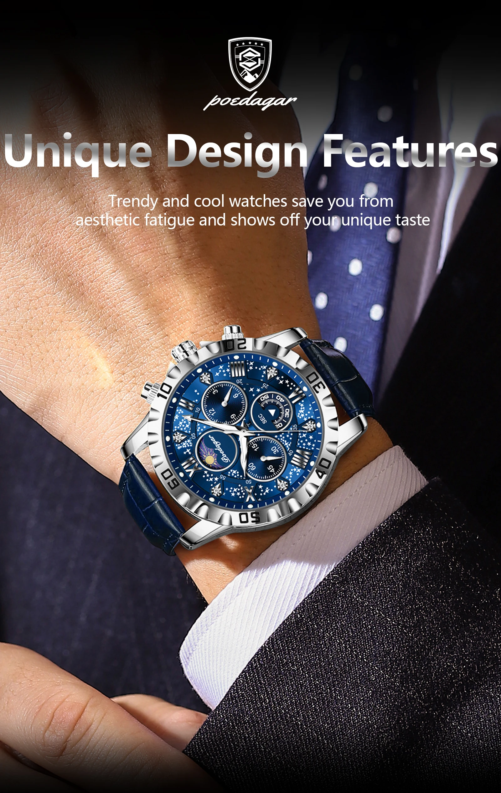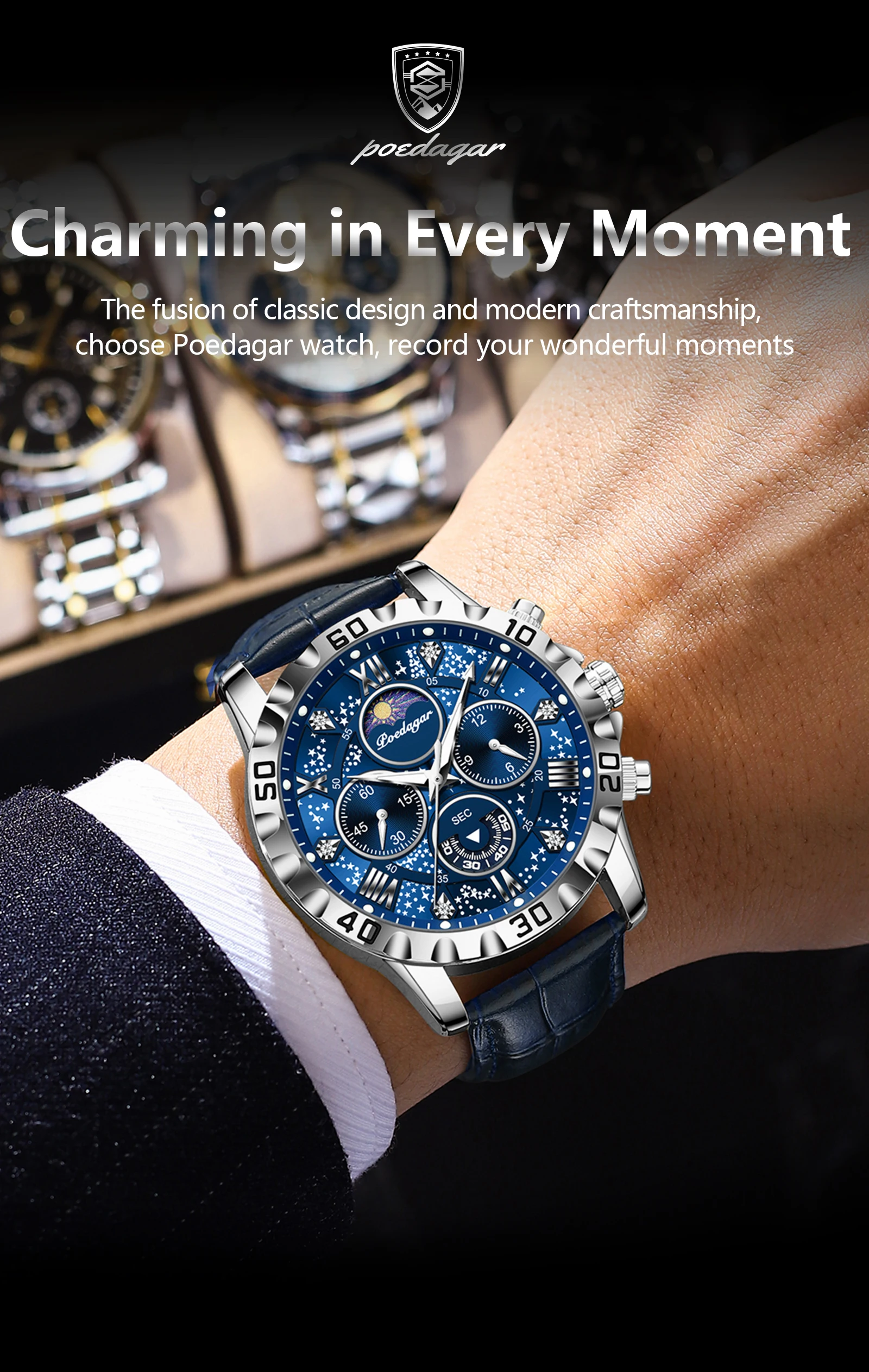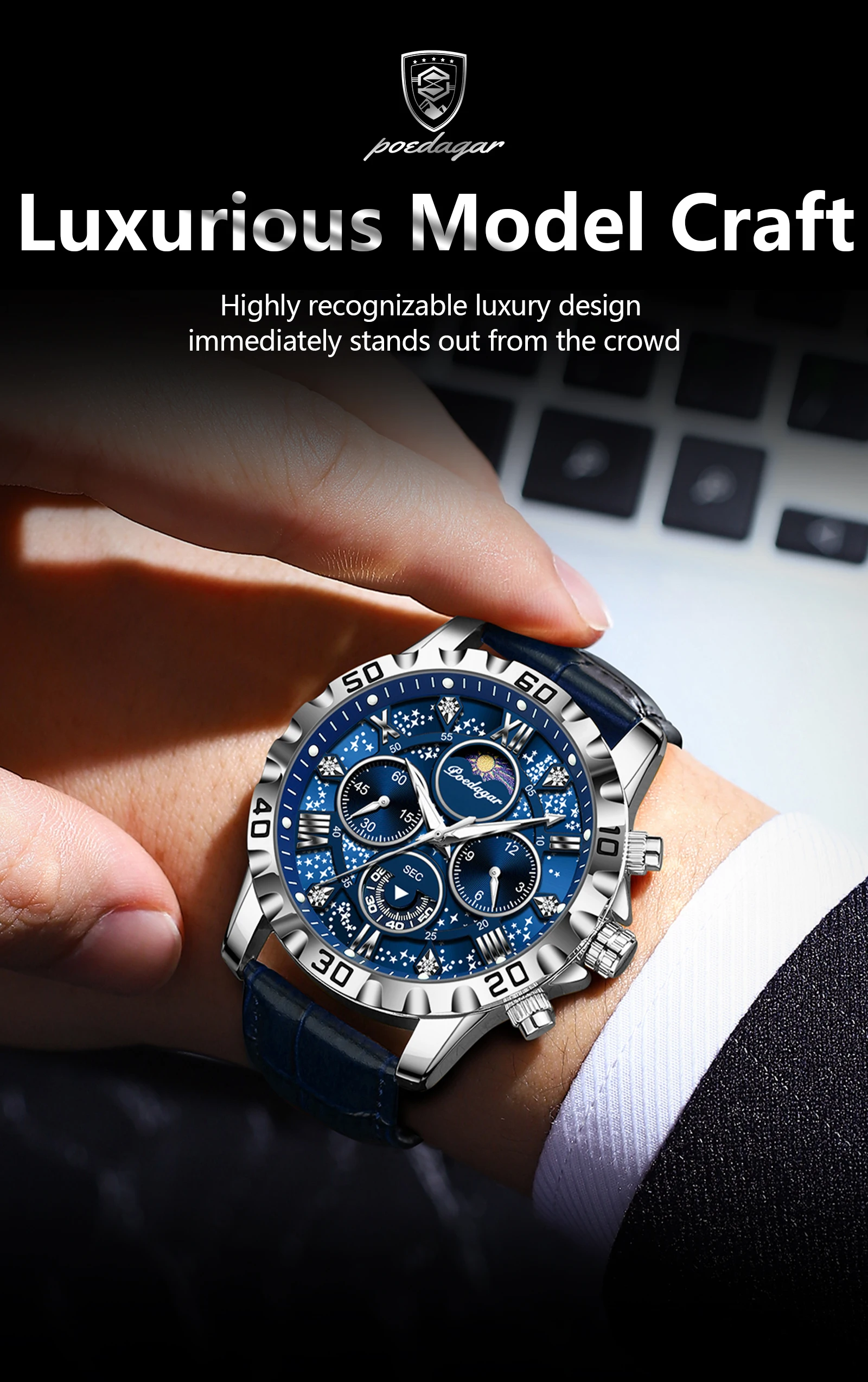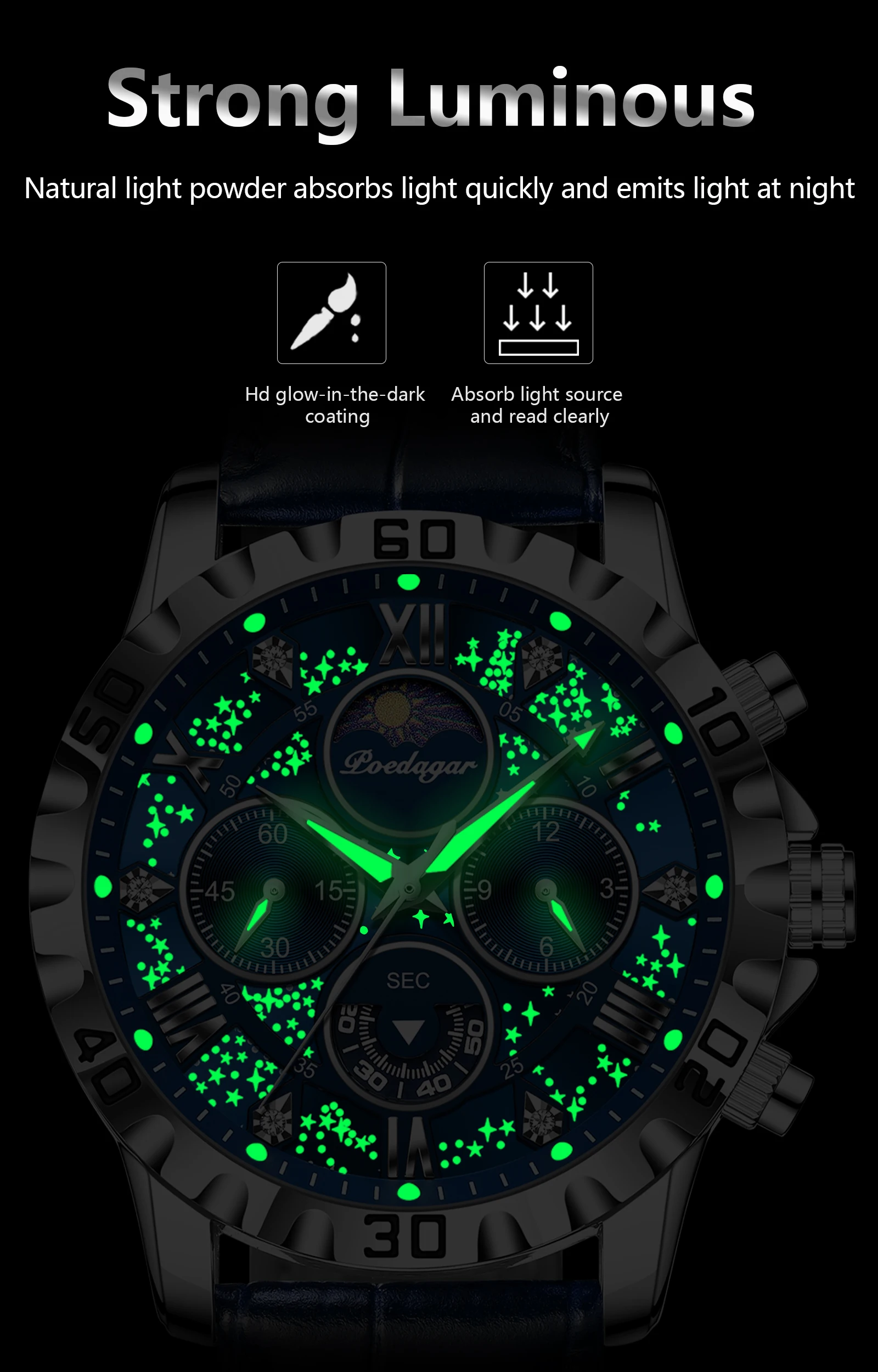 - > POEDAGAR-Relógio quartzo de couro impermeável masculino, cronógrafo luminoso, militar, alta qualidade, luxo, homem, reloj