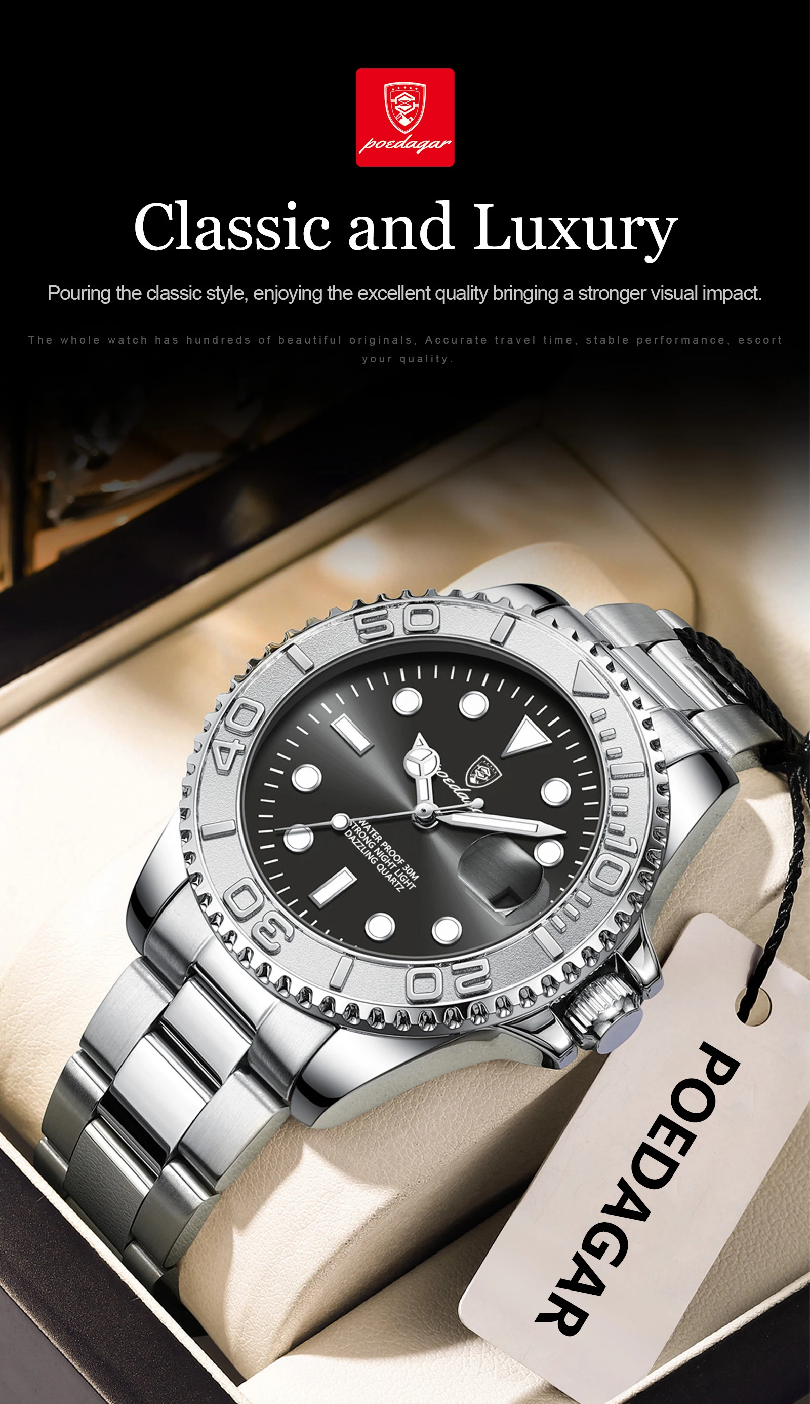 Poedagar topo de luxo homem relógio à prova dwaterproof água luminosa data relógio masculino aço inoxidável esportes moda relógios quartzo masculino