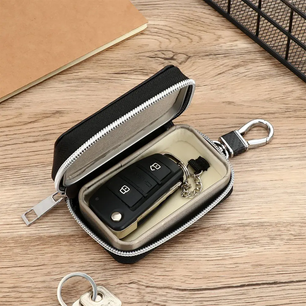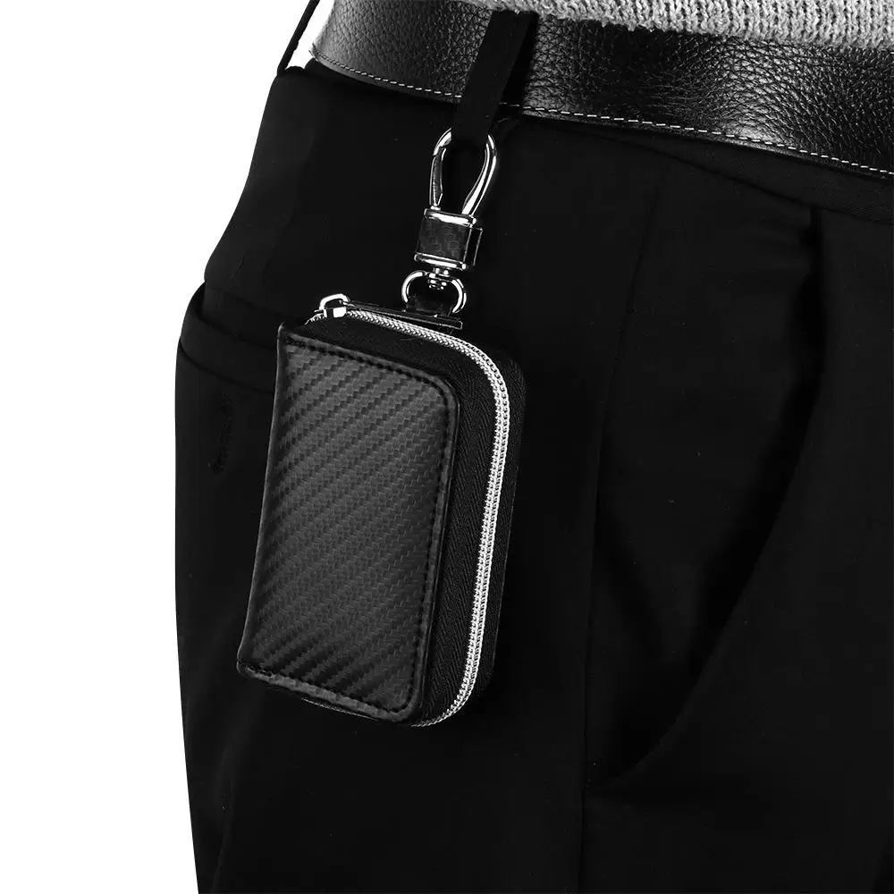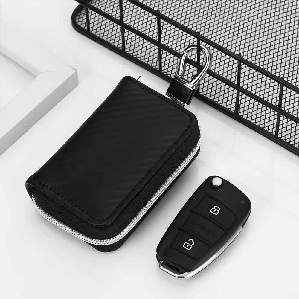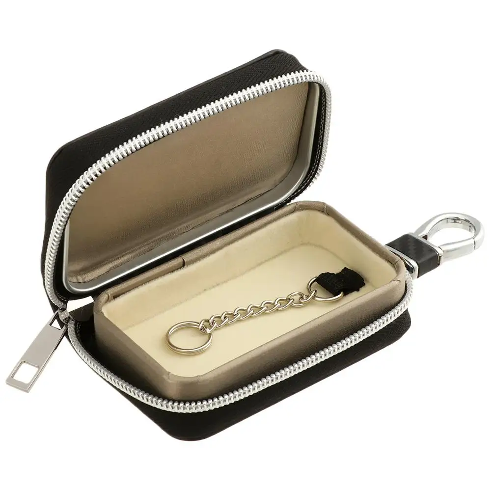 - > Portátil fob bolsa com zíper saco de bloqueio rfid caso bloqueador de sinal chave do carro sinal blindagem faraday gaiola