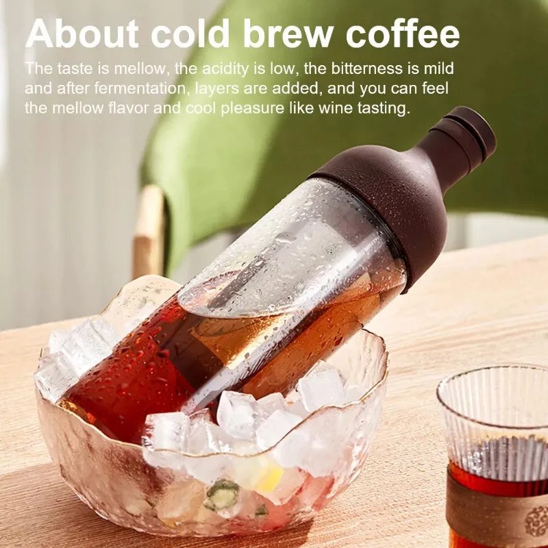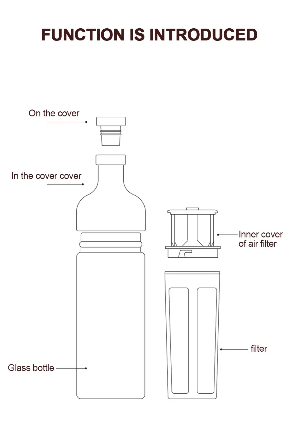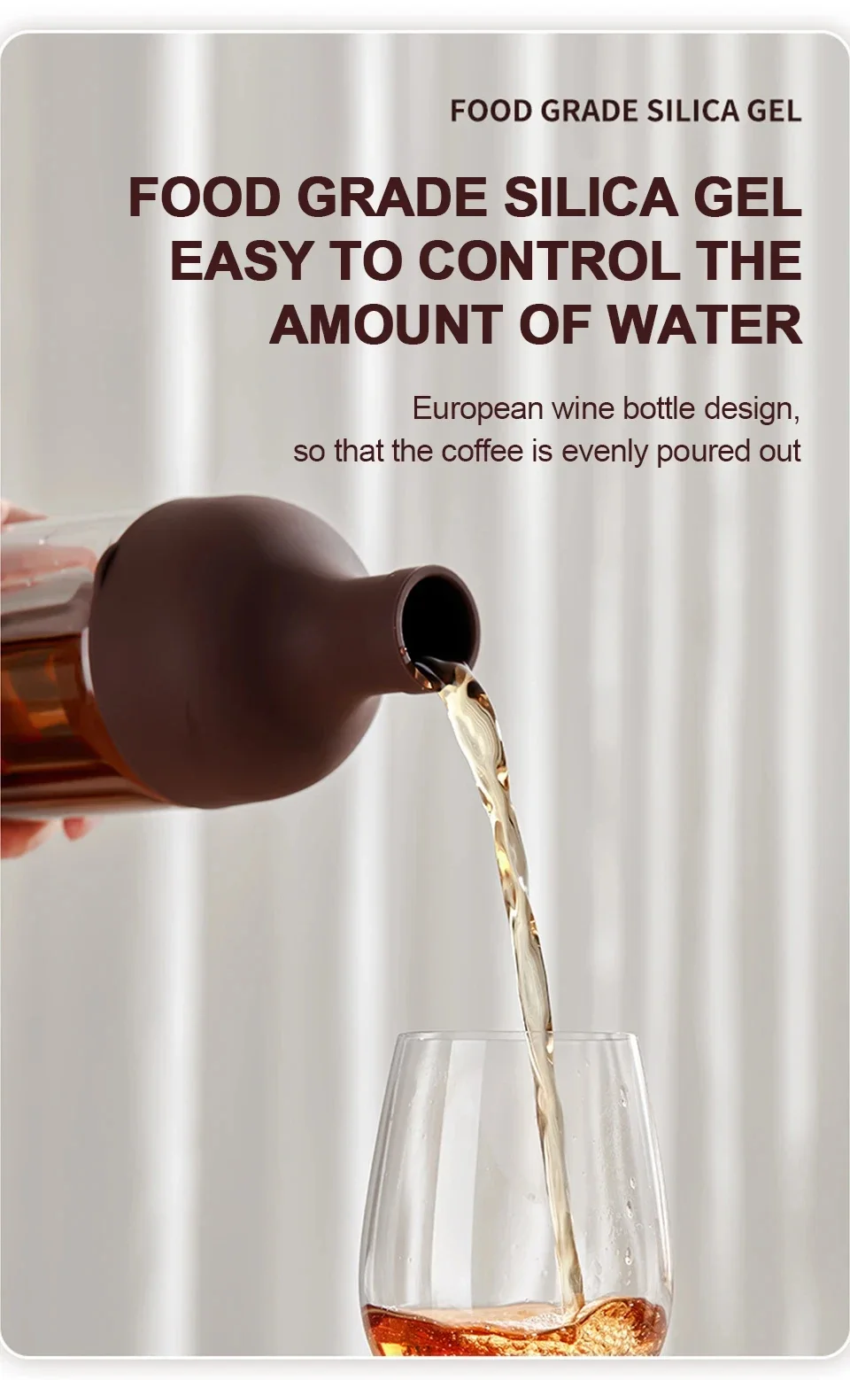 Design do formato da garrafa: O design da tampa intermediária de silicone é semelhante ao de uma garrafa de vinho tinto, o que permite controlar melhor a quantidade de água ao servir café ou chá de frutas