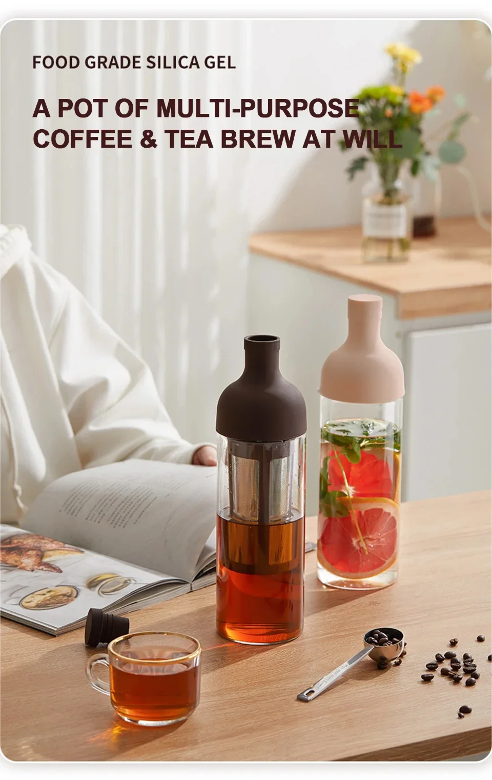 1 pçs vidro manual cold brewer pote portátil café chá cold brew maker removível malha filtro doméstico chaleira acampamento uso