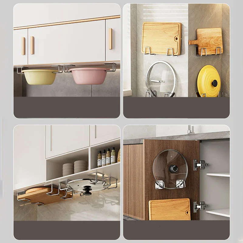 Prateleiras de cozinha de parede não perfuradas, cremalheiras de armazenamento de tábua de corte, cremalheiras de tampa de panela, ganchos, racks de drenagem de pia, ferramentas de cozinha