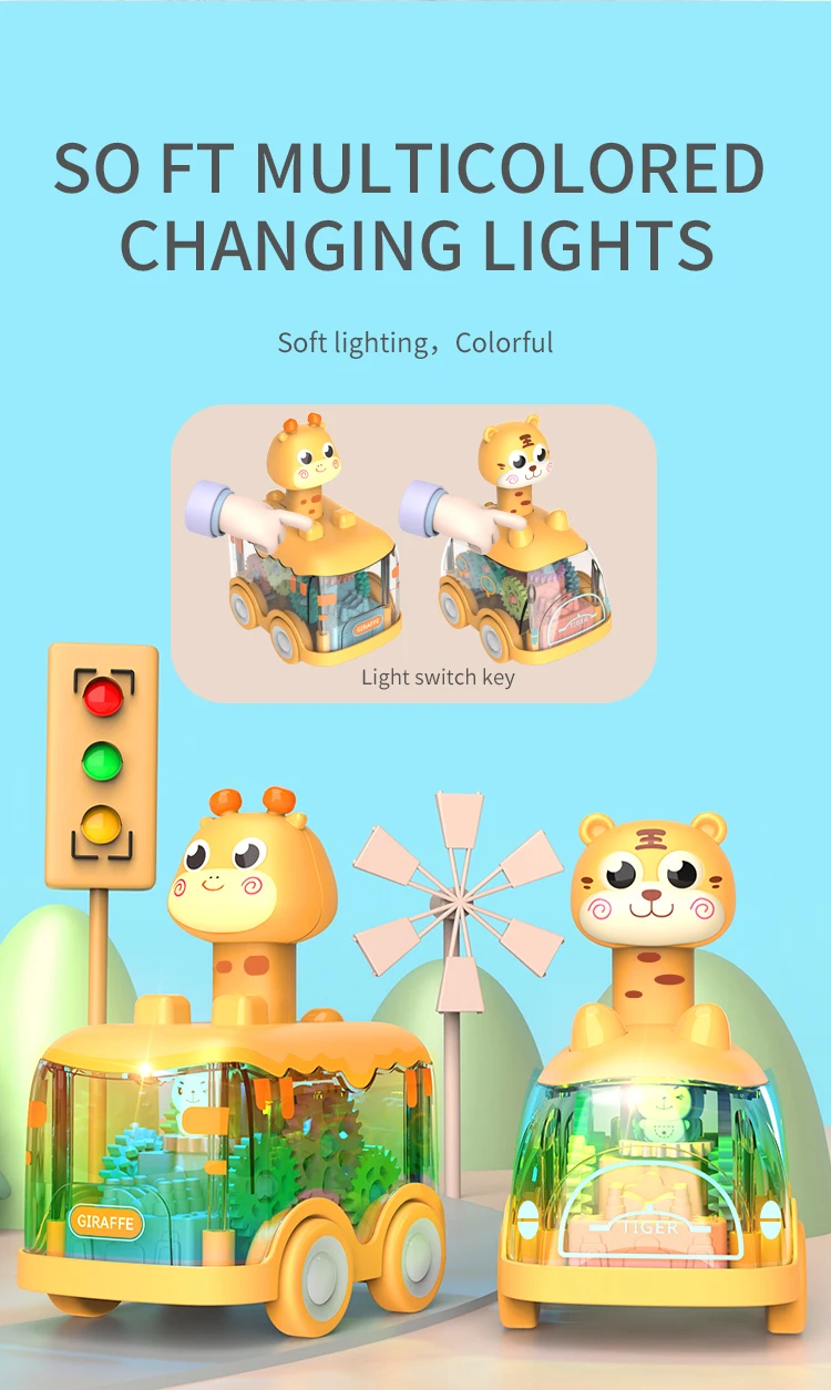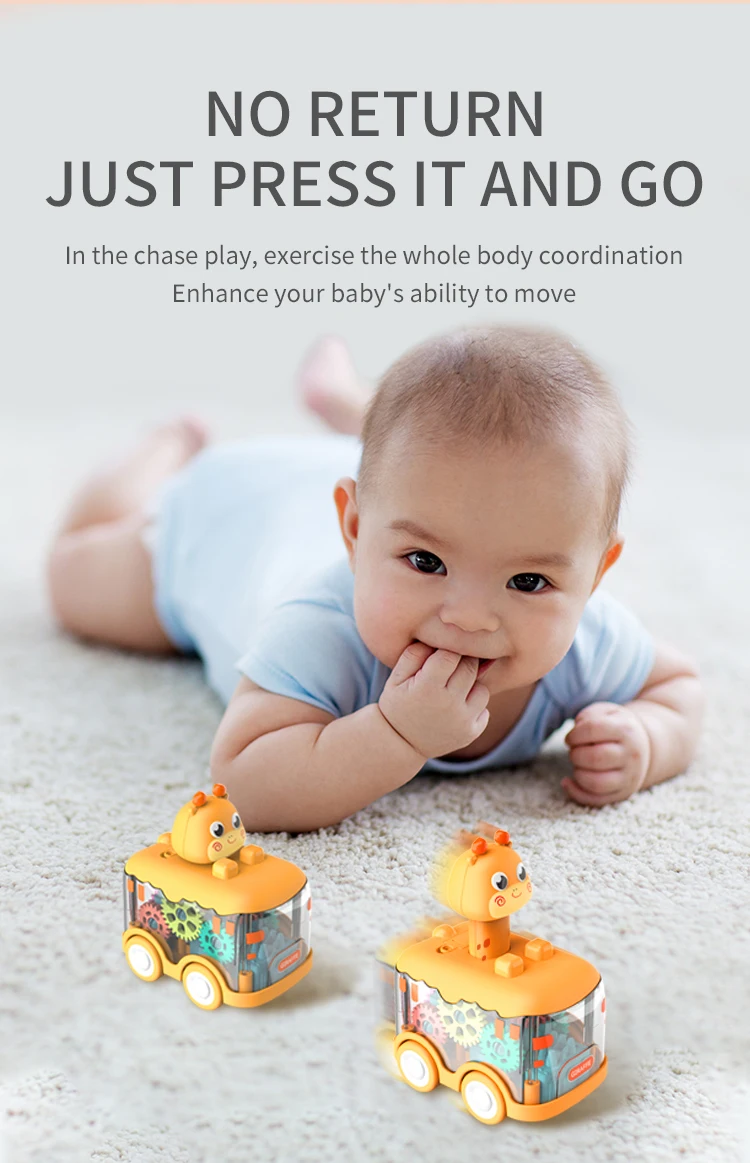 - > Press Gear Car Toy para crianças, puxar, puzzle inercial, animais, menino