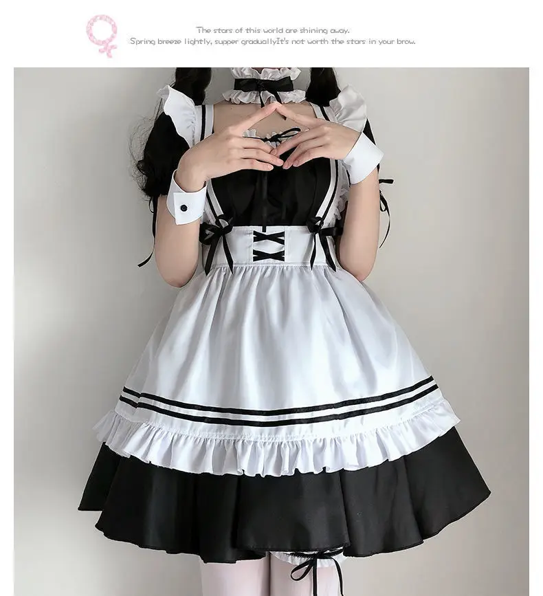 Preto branco lolita empregada traje cosplay trajes bonito vestido sexy avental francês uniforme café empregada festa saia roupas femininas