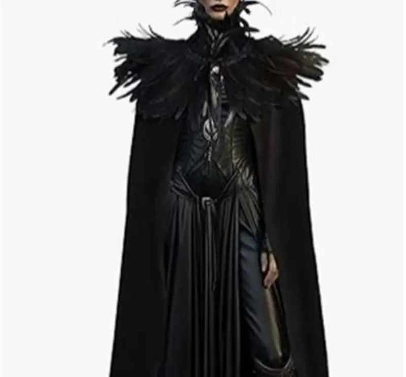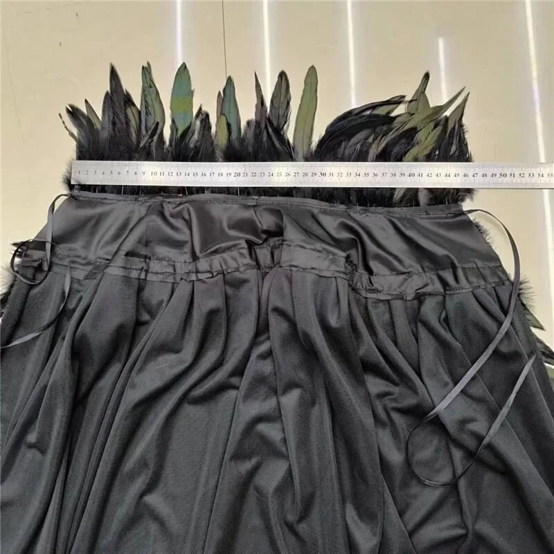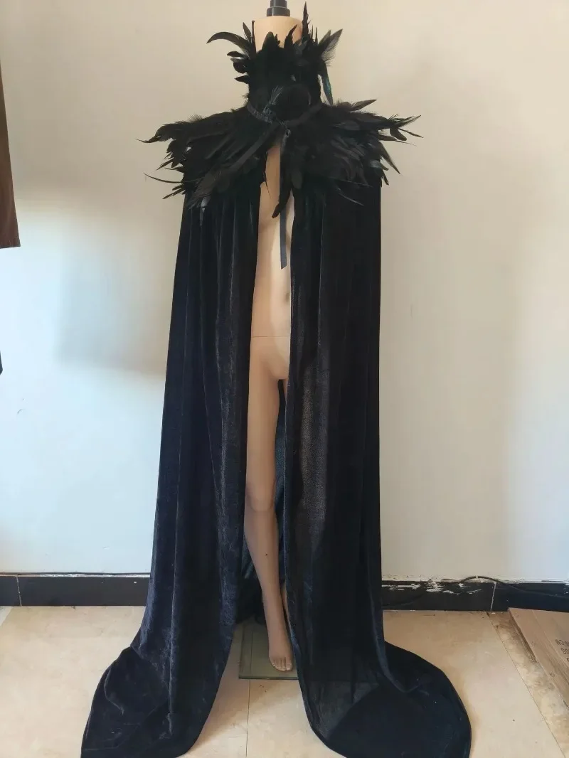 Preto mal bruxa manto steampunk cosplay trajes gola de penas luz gaze capa comprimento 180cm halloween carnaval festa adultos