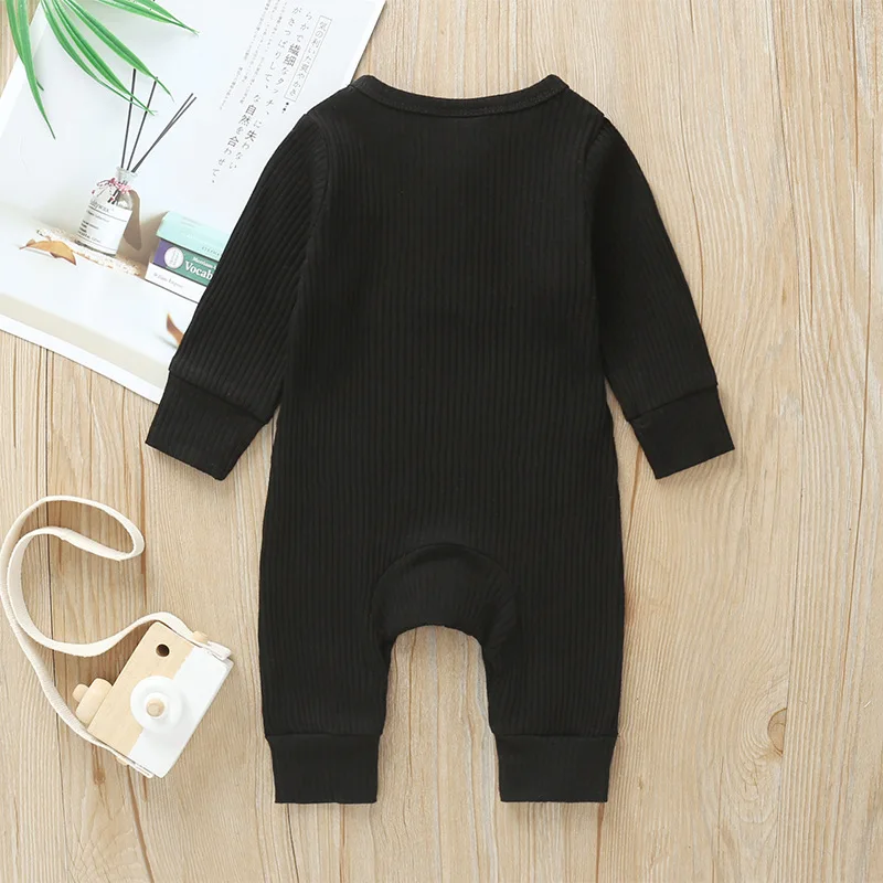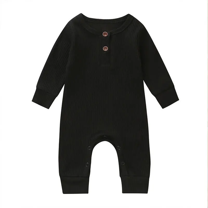 - > Primavera outono bebê recém-nascido meninos meninas manga cheia costela algodão macacão playsuit