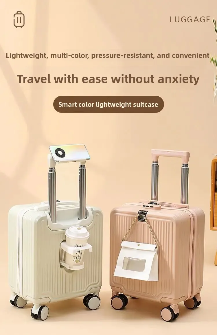 Primavera outono companhias aéreas 14 Polegada mala de mão leve saco de viagem feminino pequena caixa de senha bagagem material pvc