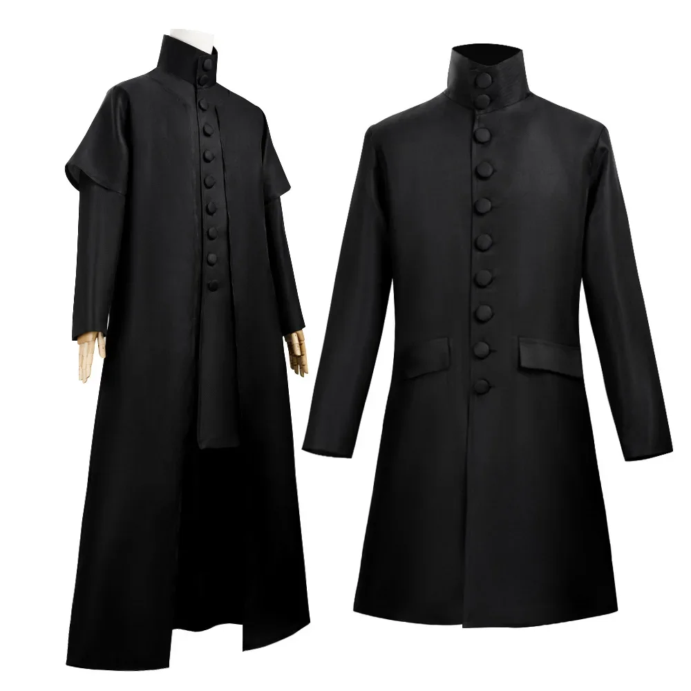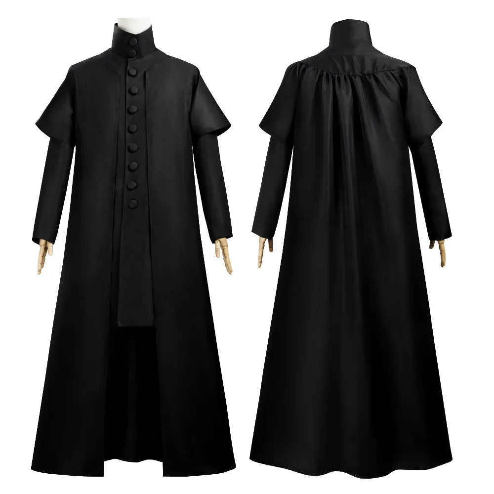 Professor severus snape cosplay traje hogwarts escola capa preta camisa terno em robe humano varinha mágica carnaval festa uniforme