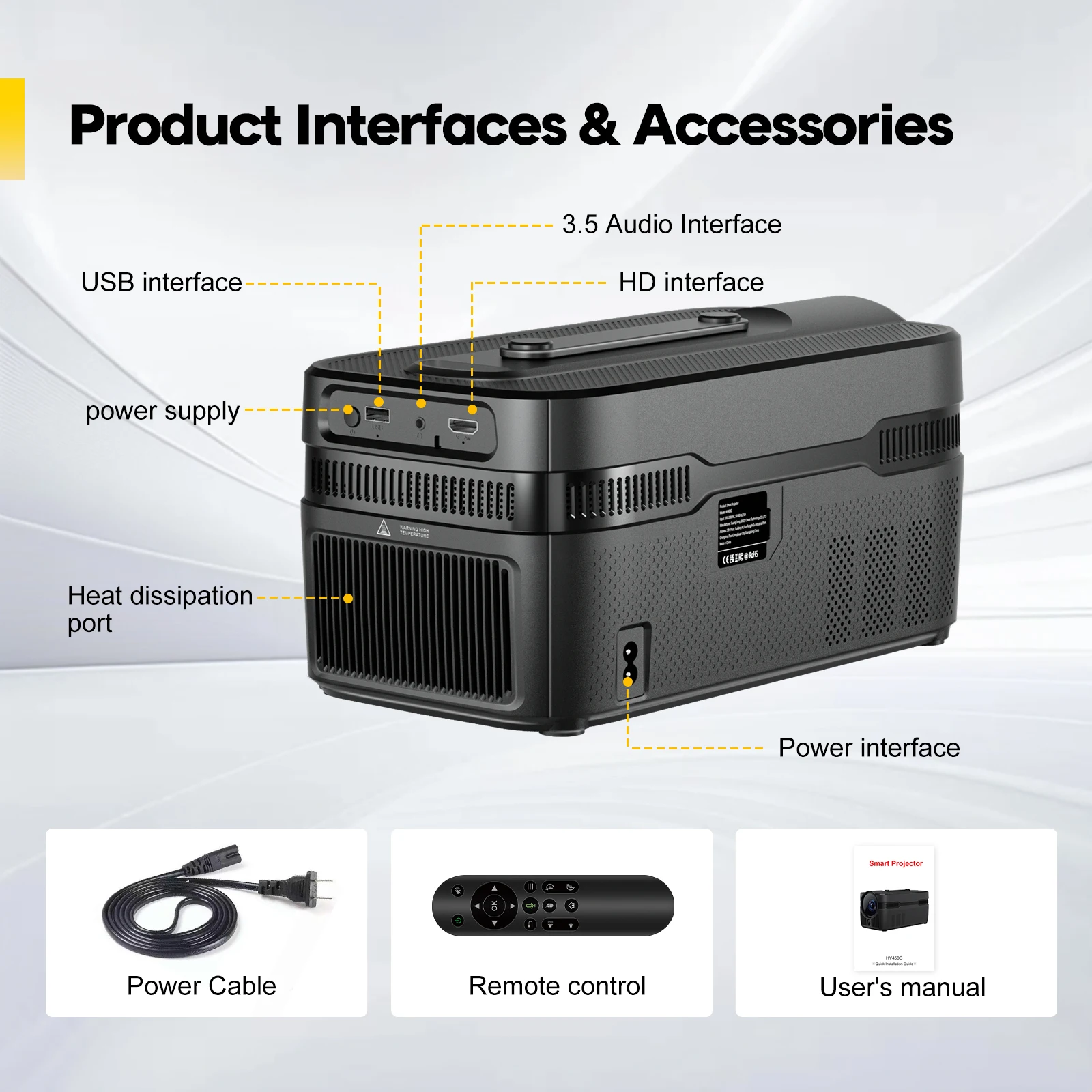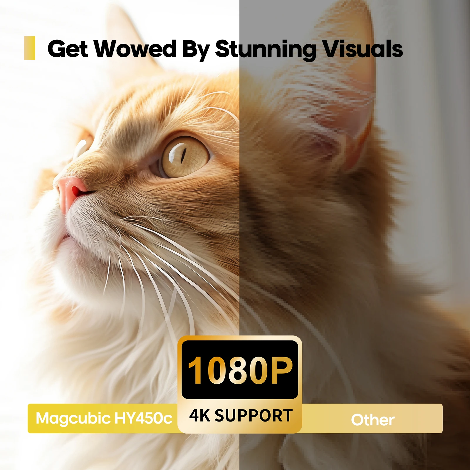 - > Projetor Magcubic Auto Focus HY450C Ultra Short Throw com deslocamento automático 1080P 8K HD 900 ANSI WiFi6 BT5.4 Allwinner H716 Voz