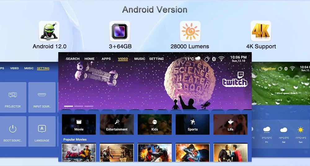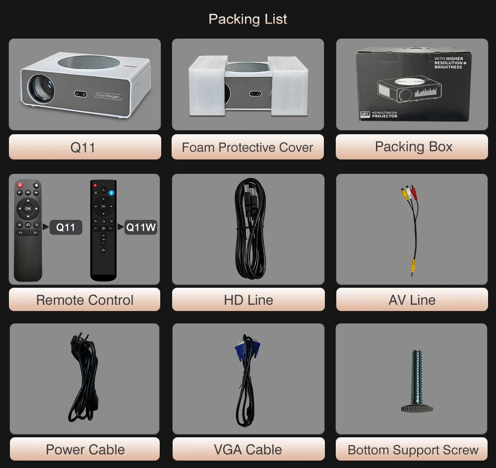 2.O Android Q11 vem com um controle remoto Bluetooth, que pode responder rapidamente sem mirar no projetor.Q11game é um controle remoto infravermelho comum;