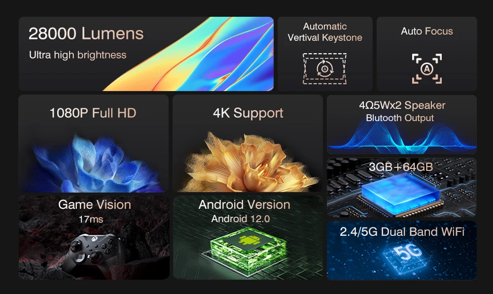 * Resolução real 1920*1080P e suporta 4K completo, suporte máximo 8k