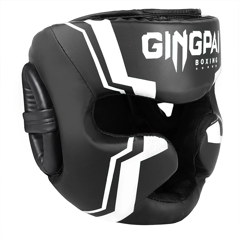 Gingpai capacete de boxe facial completo couro do plutônio muay thai treinamento sparring chapelaria capacete mma cabeça engrenagem guarda adequado para homens e mulheres