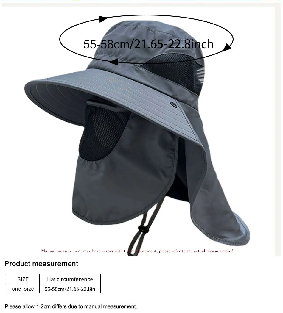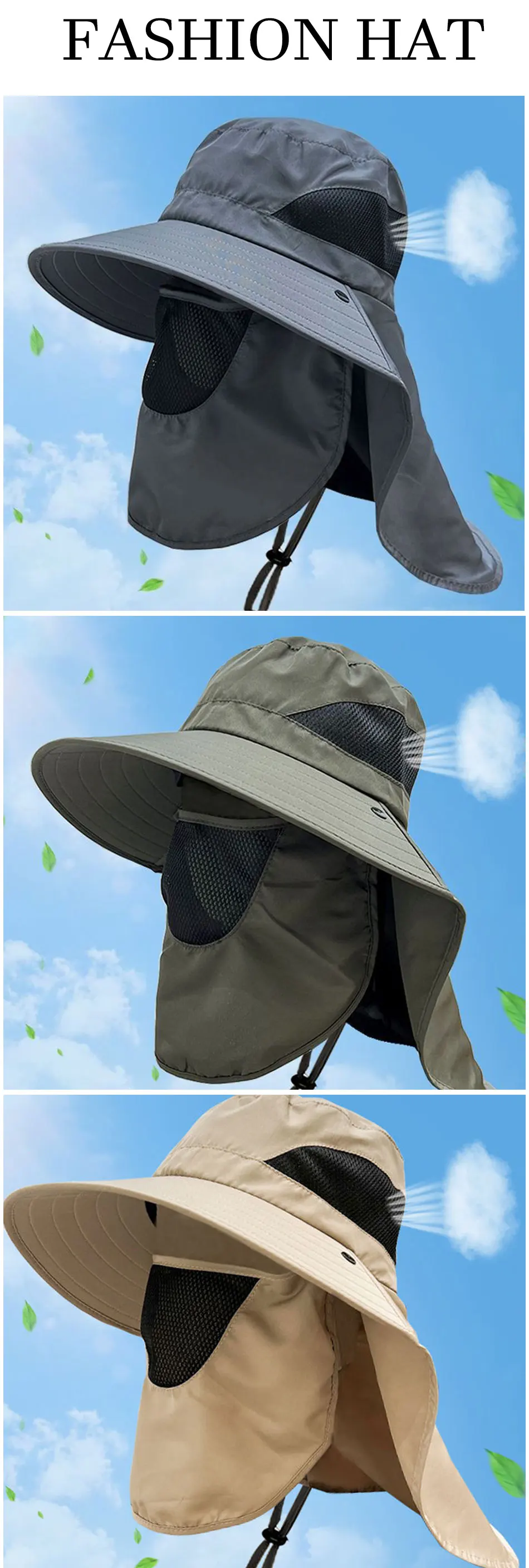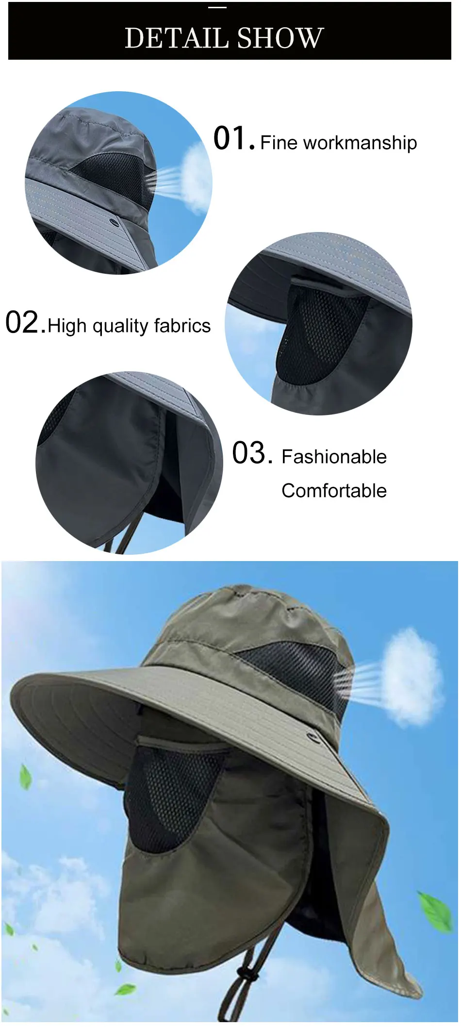 - > Proteção UV Sun Hats para homens e mulheres, Outdoor Hunting Cap Pesca, Caminhadas, Camping Visor, Bucket Hat, Neck Flap Fisherman Hat, Verão