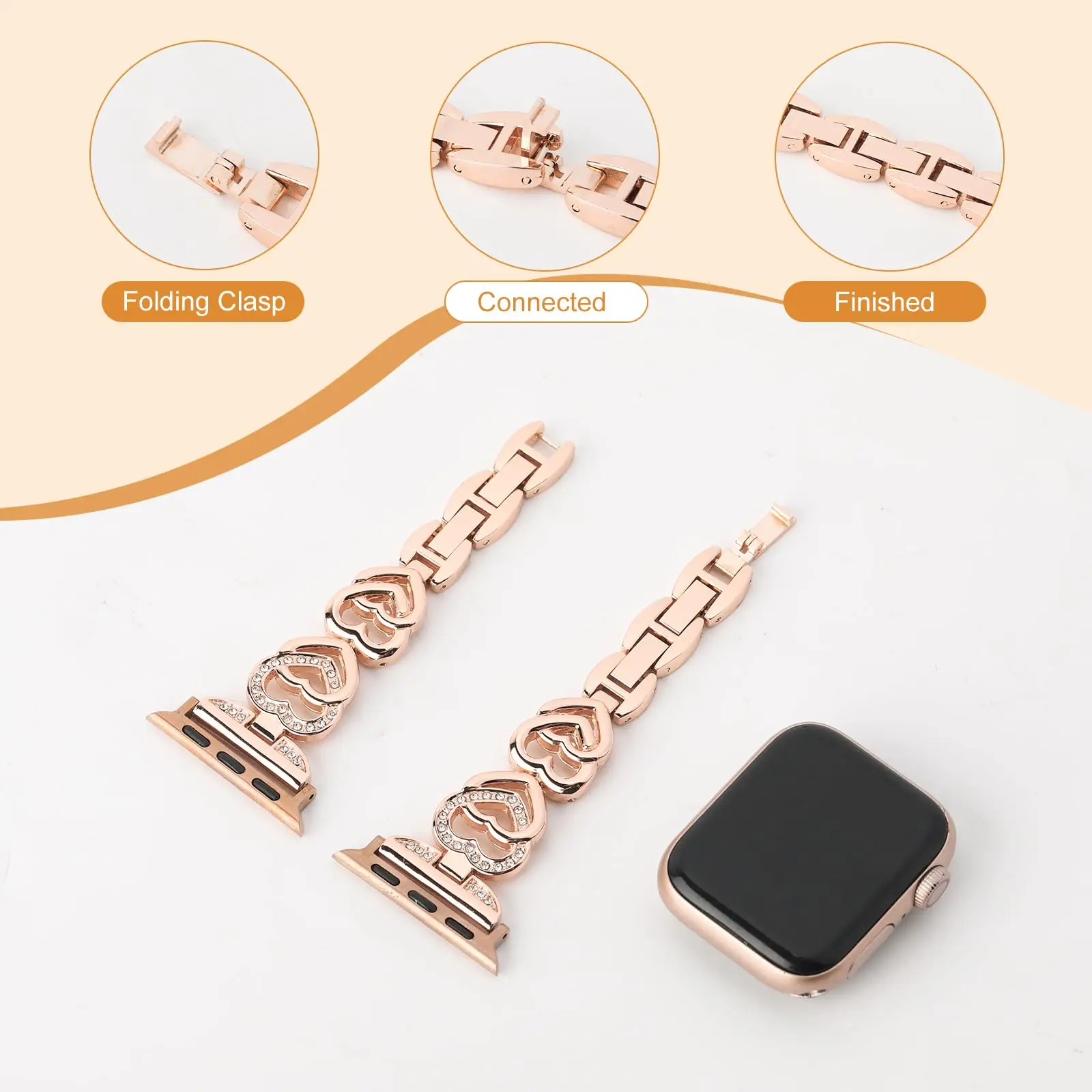 - > Pulseira Coração de Diamante para Apple Watch, iWatch Series SE, 7, 6, 3, 5, Ultra 2, 8, 9, 40mm, 44mm, 38mm, 45 milímetros, 41 milímetros, 49 milímetros, 42 milímetros