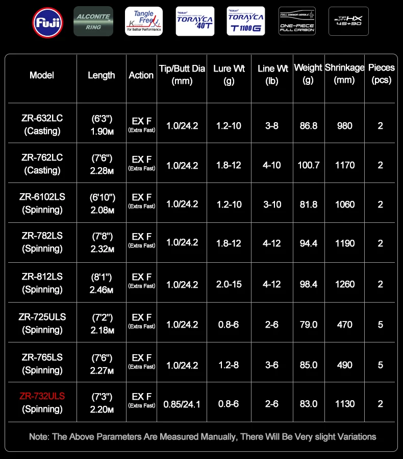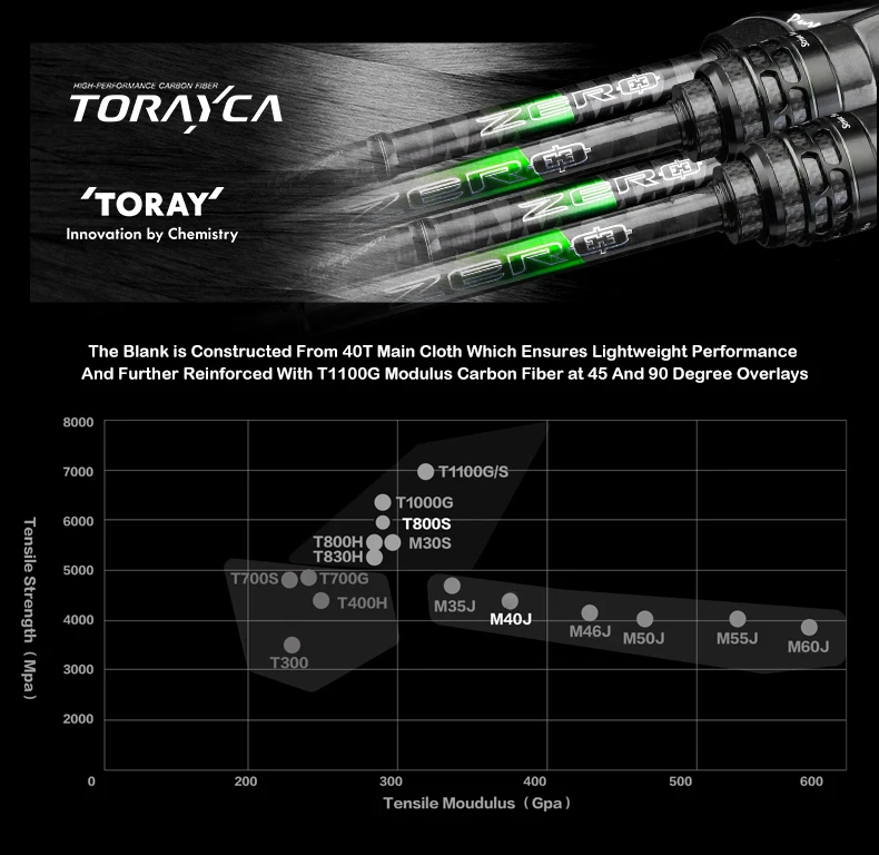 Toda a série adota o tecido de fibra de carbono de nova geração Toray T1100G do Japão, que ajusta e otimiza continuamente a estrutura, tem excelente capacidade de alongamento, exerce resiliência para reduzir o tremor desnecessário e encontra um ponto de equilíbrio mais sensível enquanto aumenta a resistência.