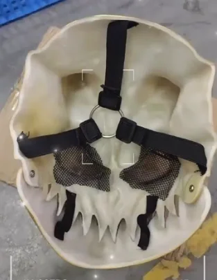 A máscara do diabo do horror é projetada com uma faixa elástica e uma boca interessante da abertura e do fechamento, que possa ser ajustada de acordo com a circunferência principal do indivíduo, e a abertura e o fechamento da boca mostram melhor vividamente a diversão da máscara, adicionando um toque de diversão ao usá-la. Este design não só facilita o uso, mas também aumenta a eficácia da máscara.