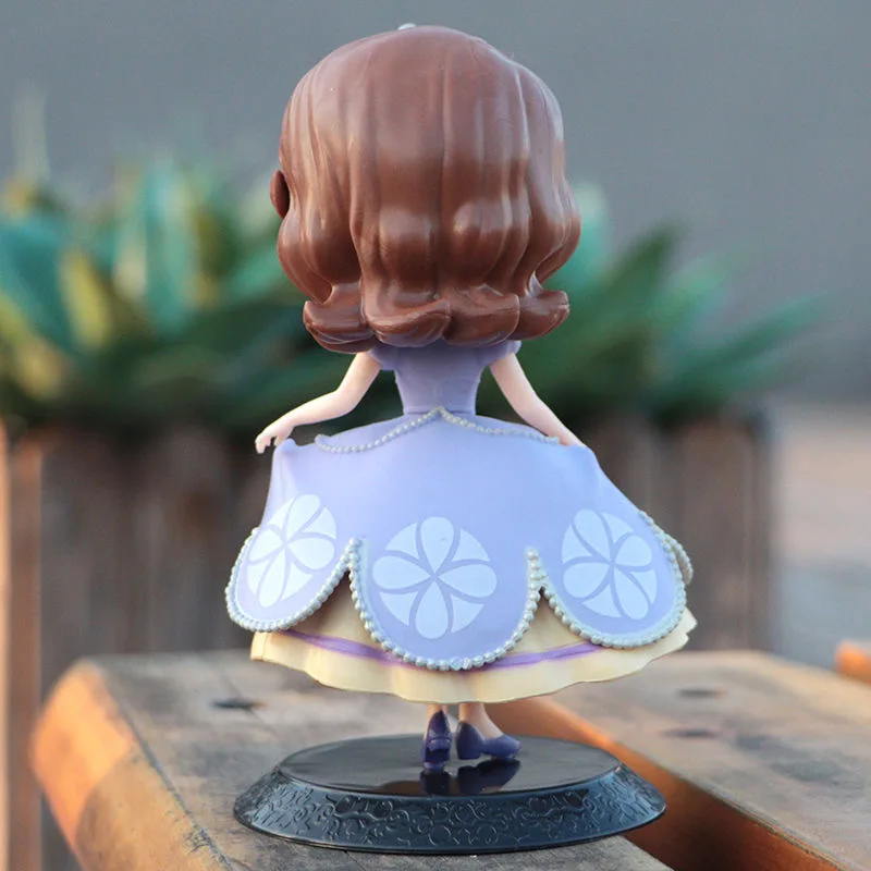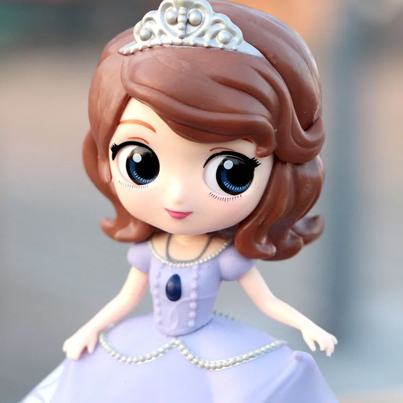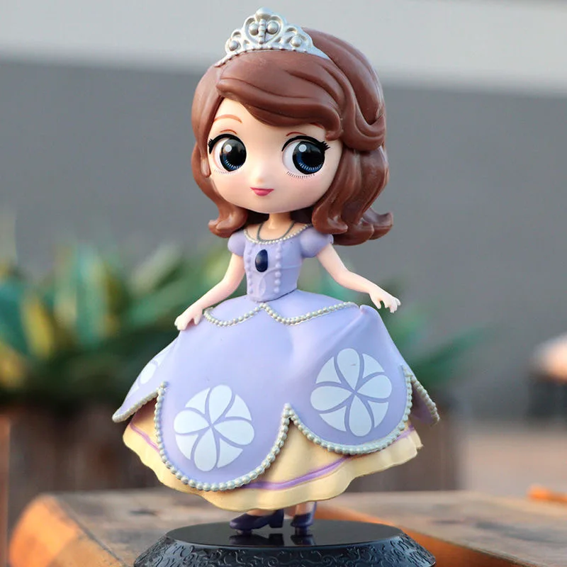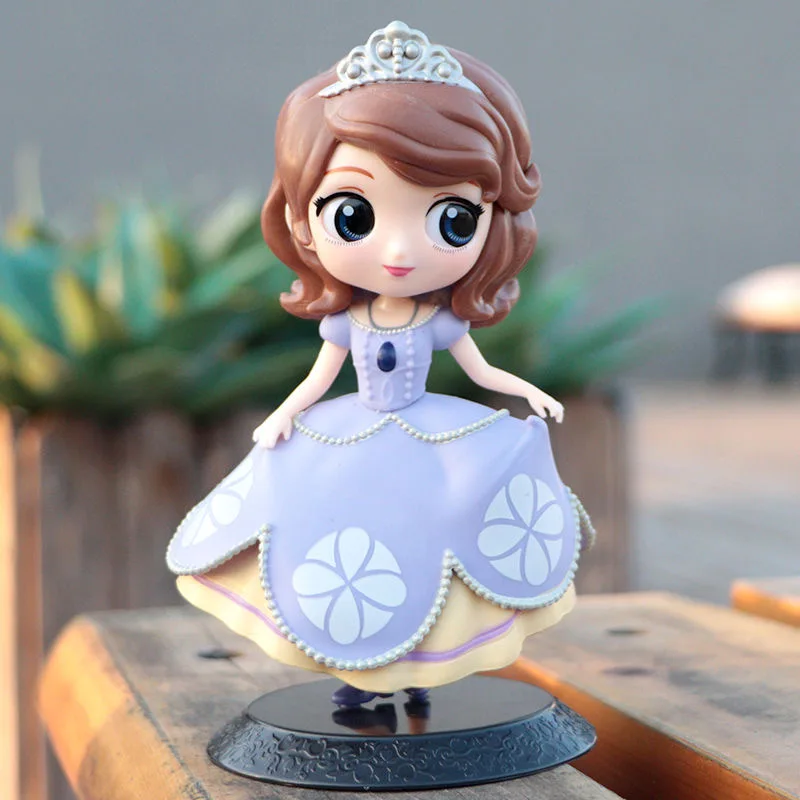 - > Q Posket PVC Figura Modelo Brinquedos, Sofia, Princesa, Rapunzel, Jasmim, Cinderela, Ariel, Mulan, Bolo, Bonecas, 14cm
